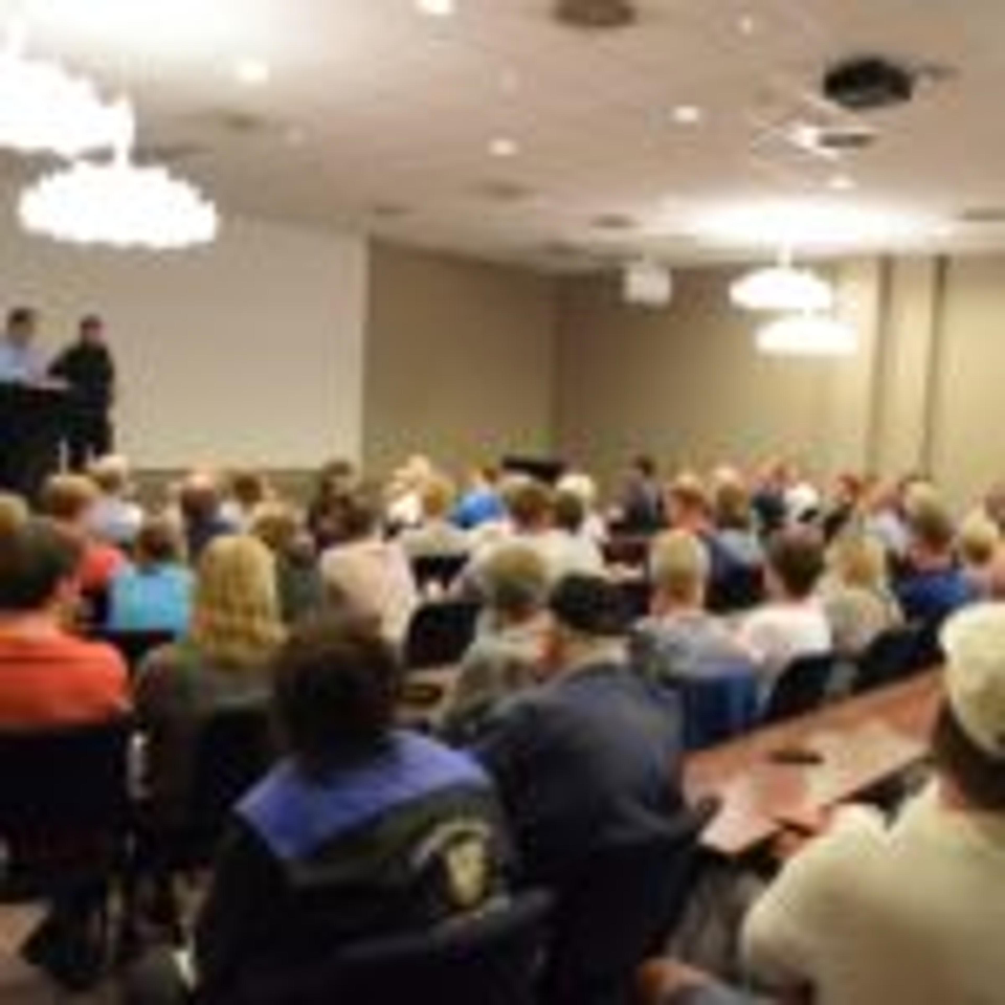 STAPP FULLT: I møterommet på Oseberg i Tønsberg var det ikke en eneste ledig stol. Foto: Stian Ormestad.