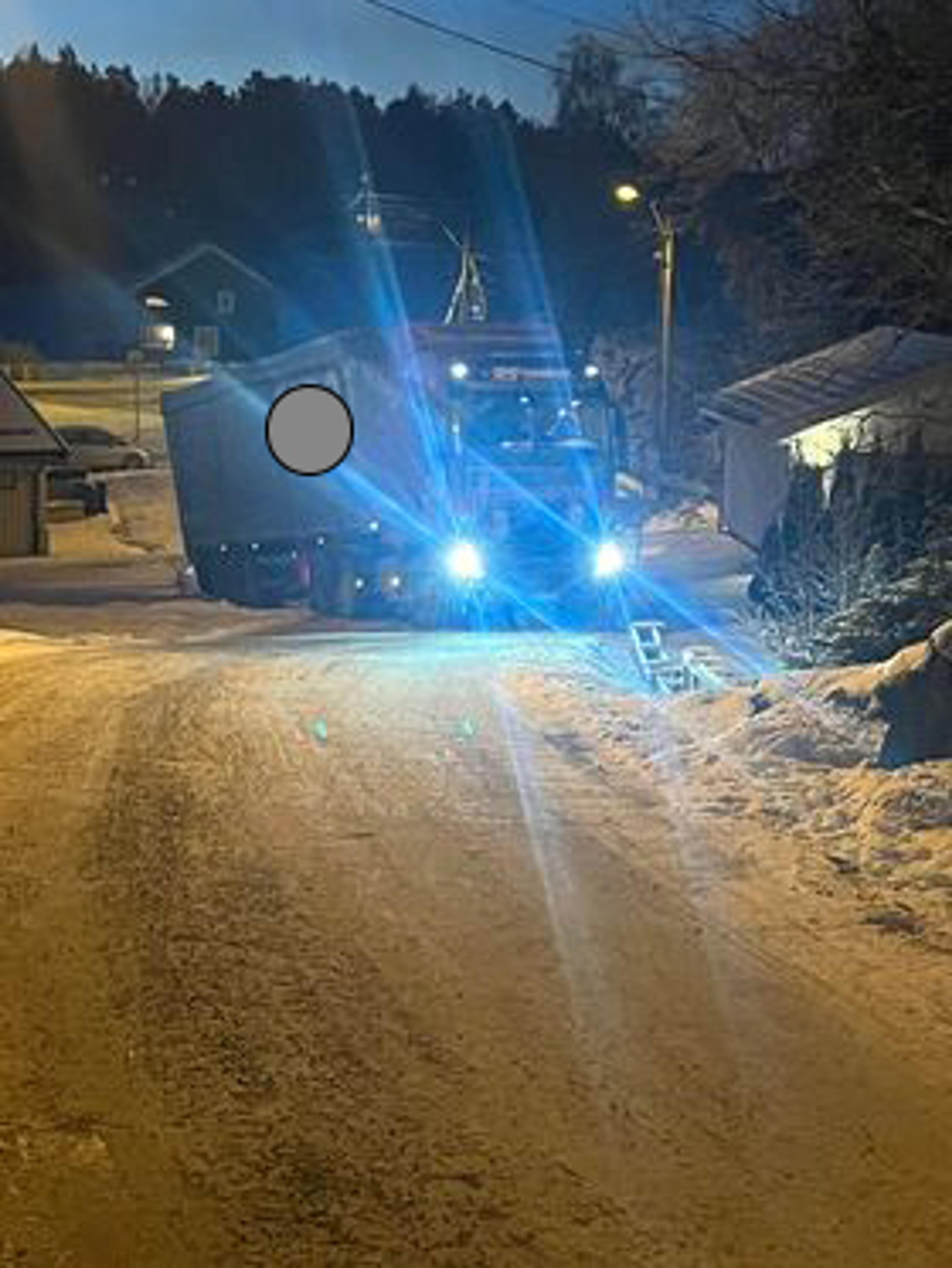 SPERRA VEIEN: Dette er ikke første gang det er trafikale problemer på Brår de siste dagene, i snøværet her om dagen ble en lastebil stående på tvers i veien. Foto: ReAvisa-tipser.