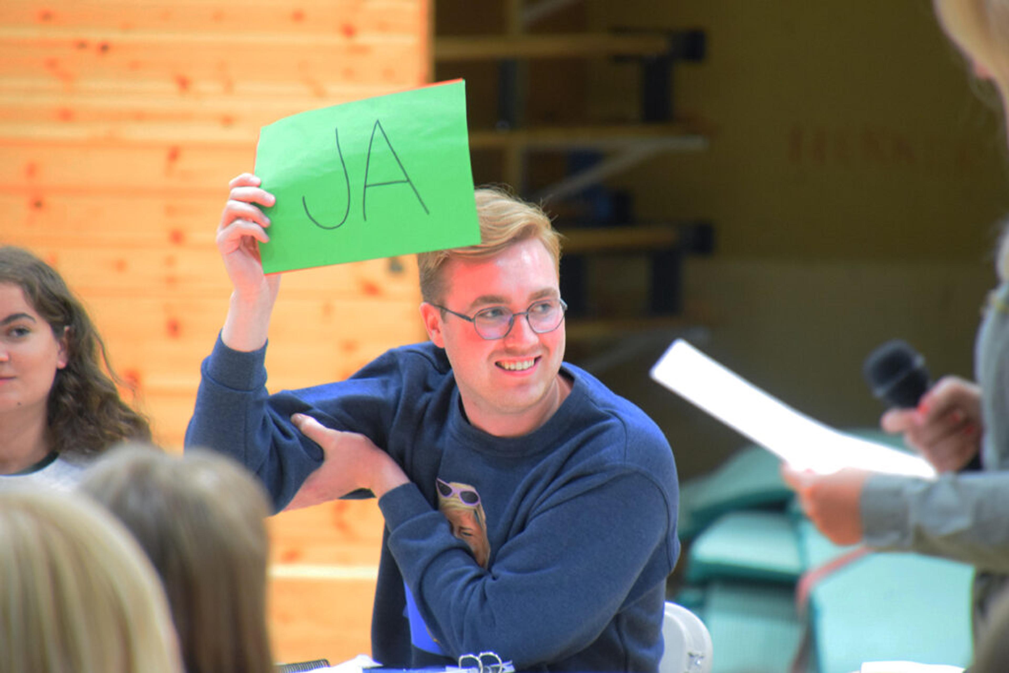 Kanskje bare slått av entusiasmen ja og nei-runden skapte. Et populært innslag, der salen fulgte godt med på hva debattantene løfta i været på hvert enkelt ja og nei- spørsmål.