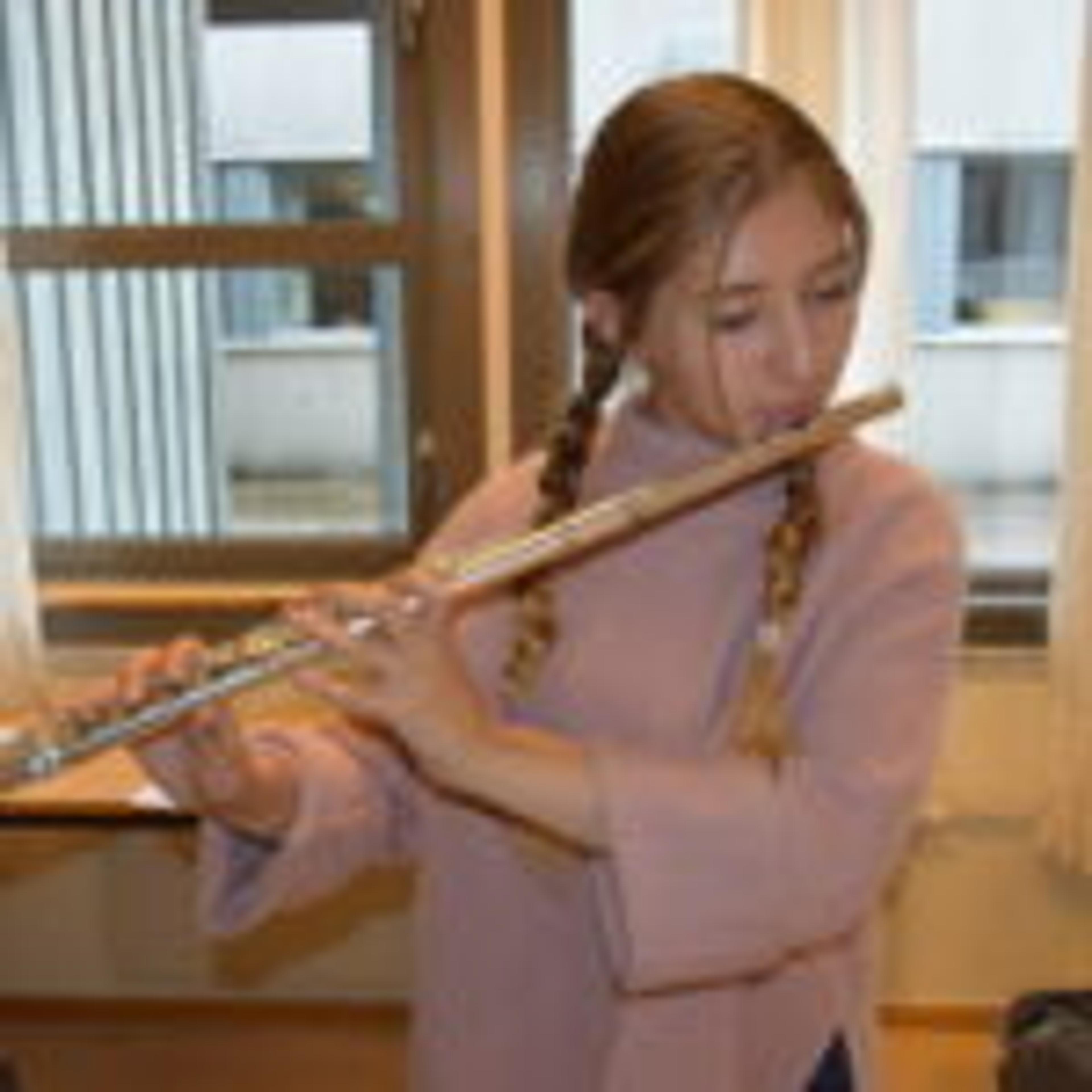 Benedicte Brudvik spiller tverrfløyte. Hun synes det er gøy å være på korpsseminar. – Vi har lært å øve sakte, sier forteller den unge korpsmusikanten.