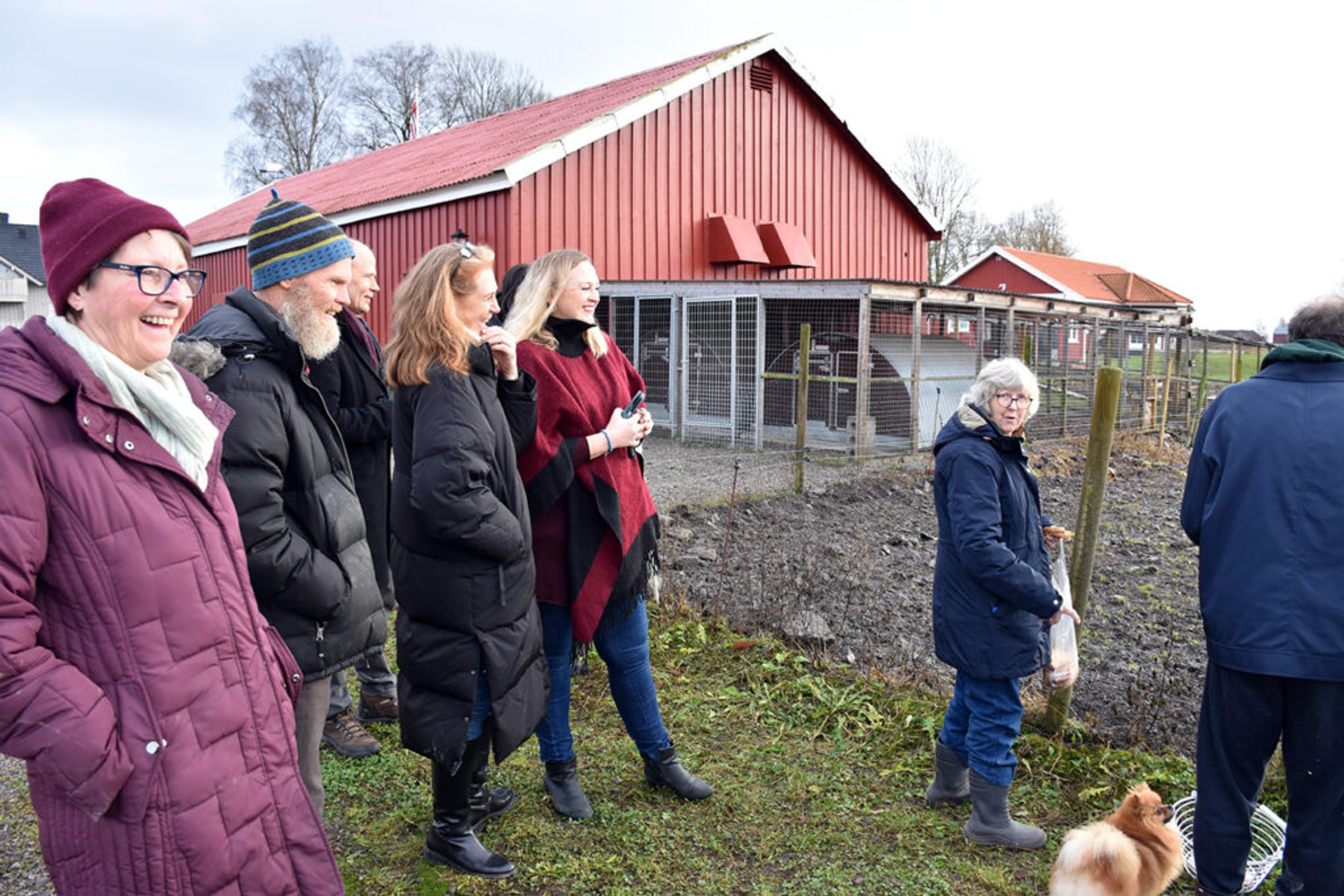 GÅRDSBESØK: Birgit og Eva var blant brukerne som viste politikere fra en samla opposisjon i Tønsberg kommune rundt på Re-gården tidligere denne uka. Foto: Stian Ormestad, ReAvisa.