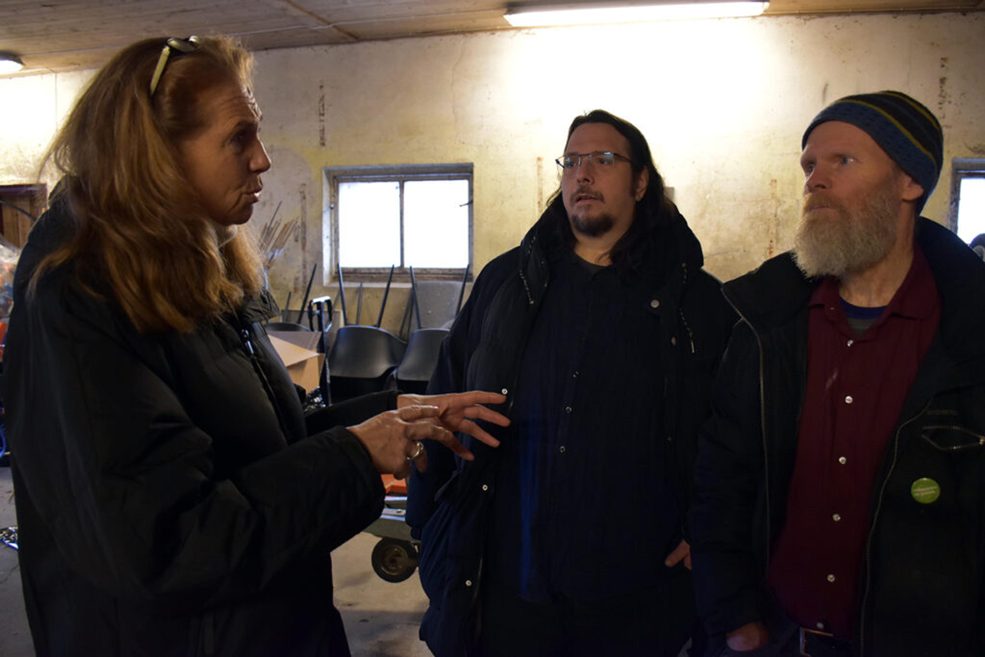 FJØS-PRAT: Trude Viola Nordli (AP), Ole Marcus Mærøe (Rødt) og Roar Lefsaker (MDG) har ingen problemer med å samles om en rød-grønn enighet i saken om demenstilbudet på Re-gården. Foto: Stian Ormestad, ReAvisa.