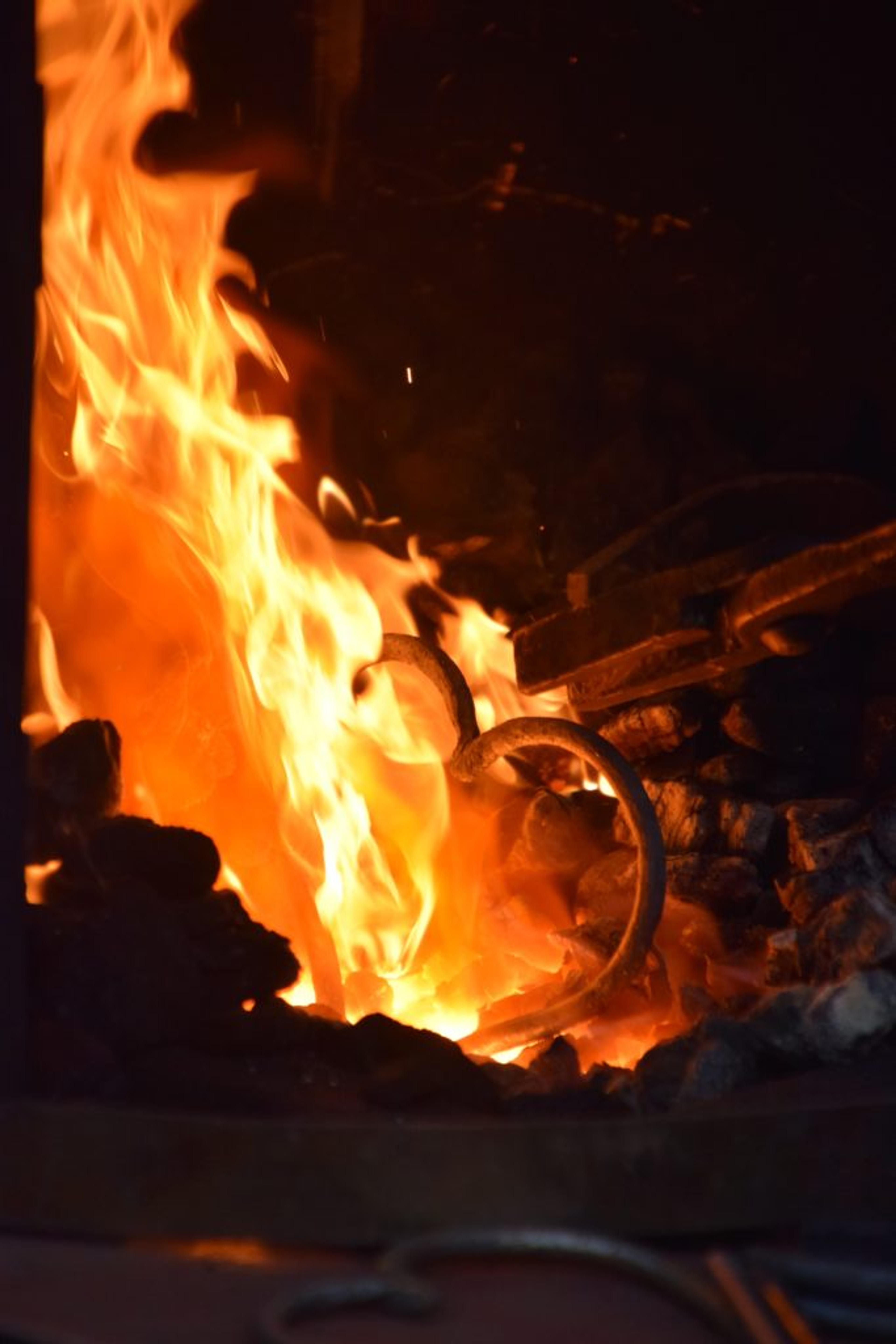 FLAMMENDE HJERTE: Hele tida må stålet innom flammene for å varmes. Foto: Stian Ormestad.