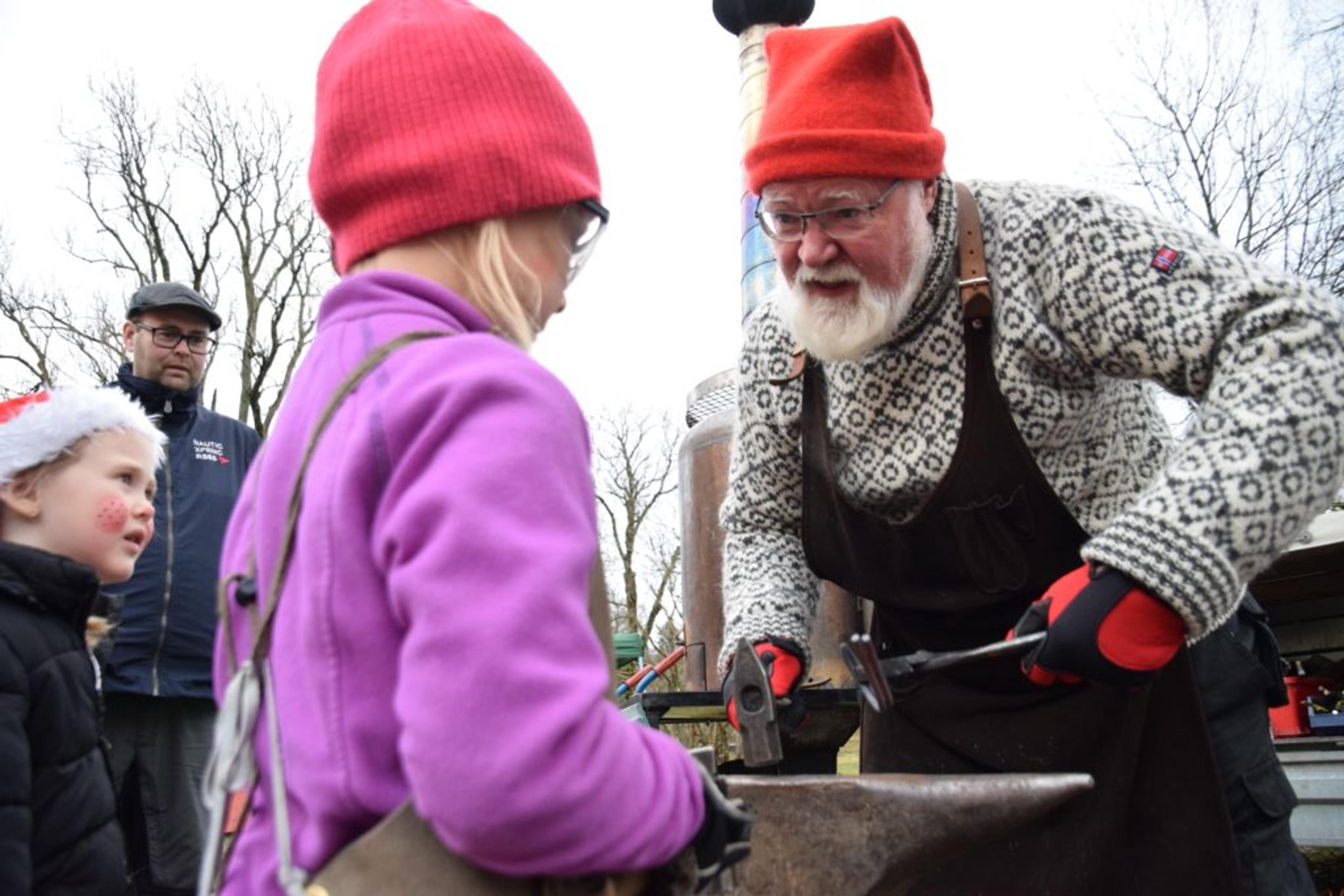 SPENNENDE: Å smi er spennende for både barn og voksne. Smednissen gjør alt på gamlemåten. Foto: Stian Ormestad.