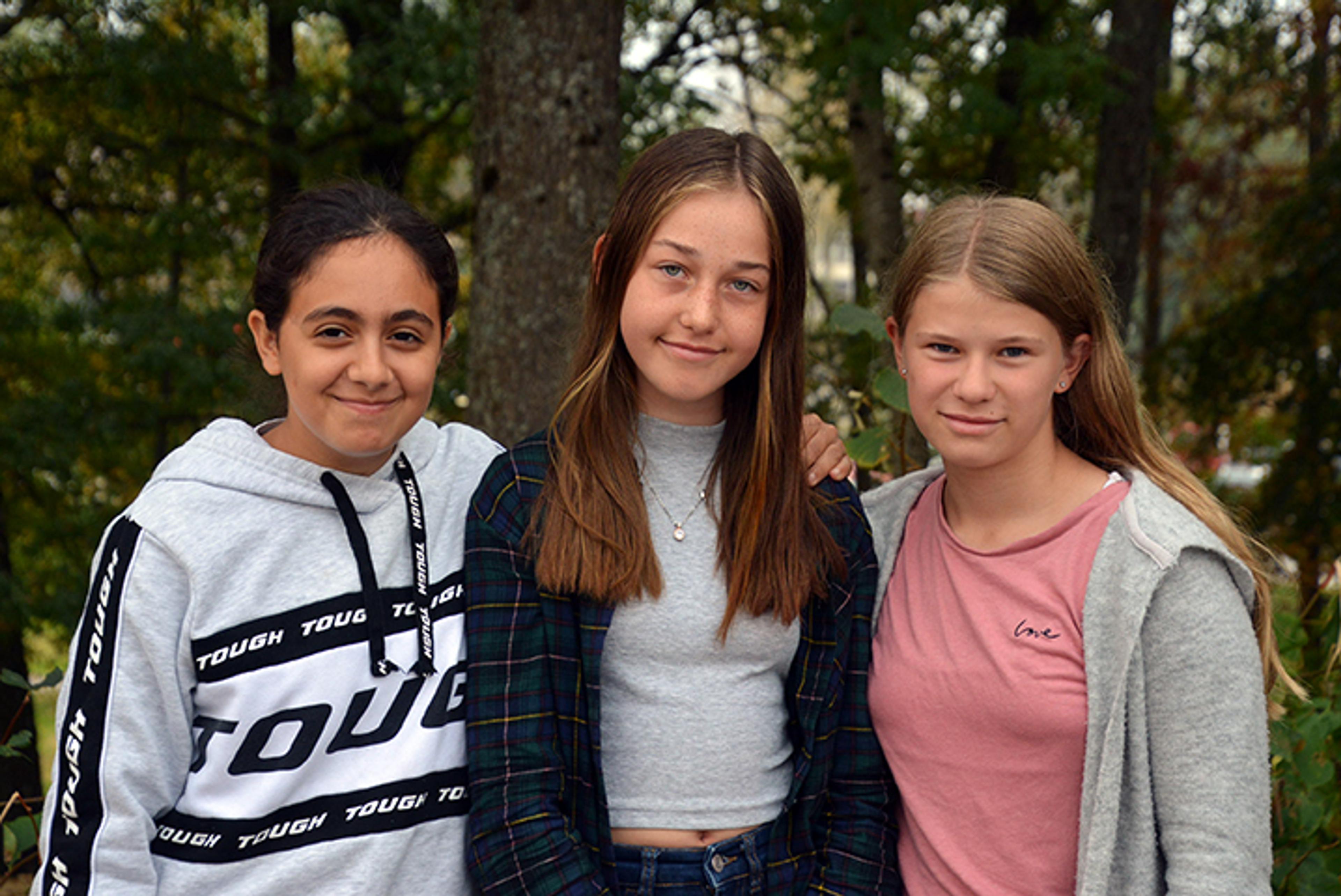 Det eneste sjuendeklassingene Helena, Maha og Stine kunne ønske seg mer av nå, var ballbinger: – Så kunne jentene spille ett sted, og guttene ett annet sted, mener Stine.