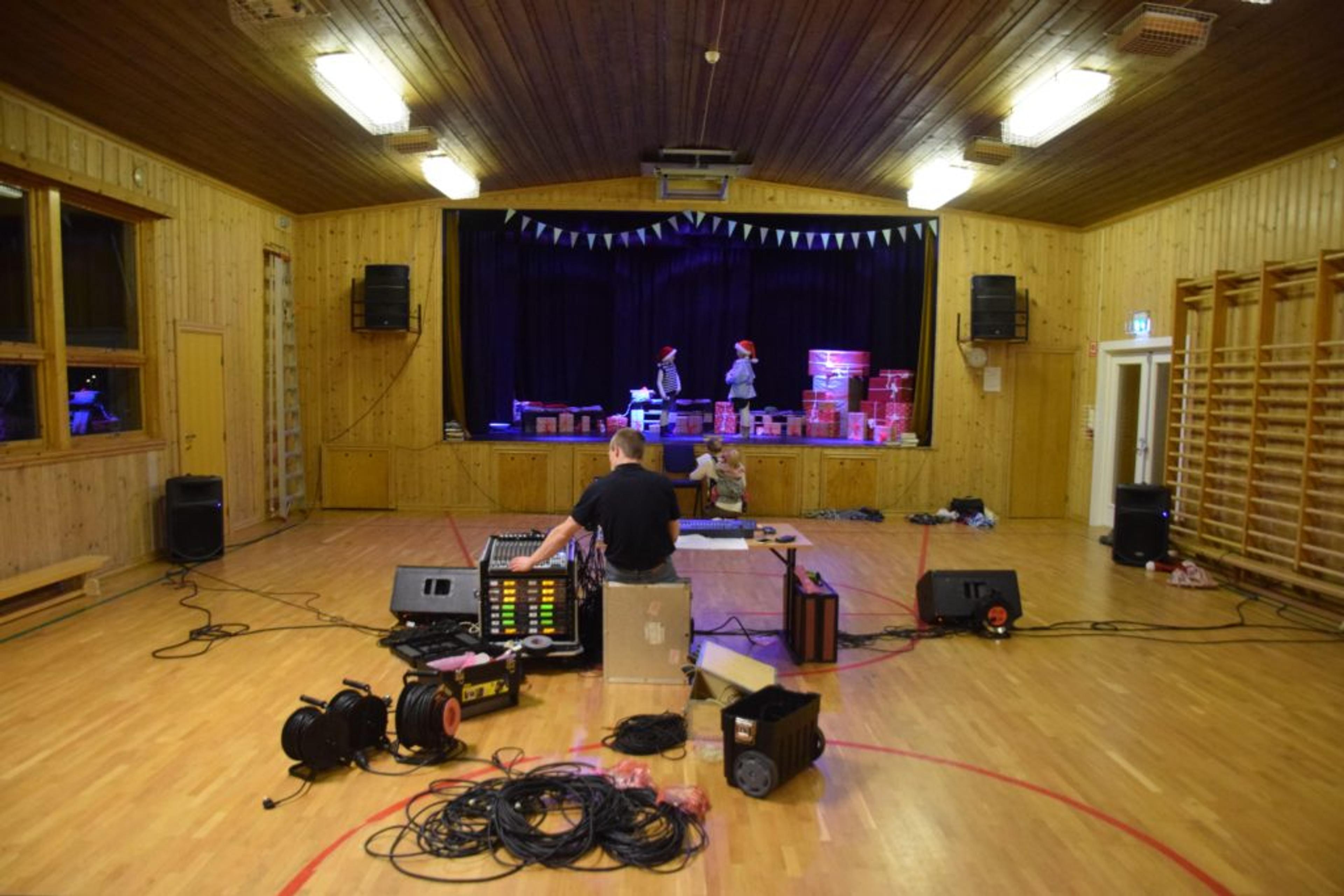 Heldigvis gikk søndagens forestilling som planlagt. – Alt det utstyret som vi brukte til forestillingen var oppe i gymsalen.