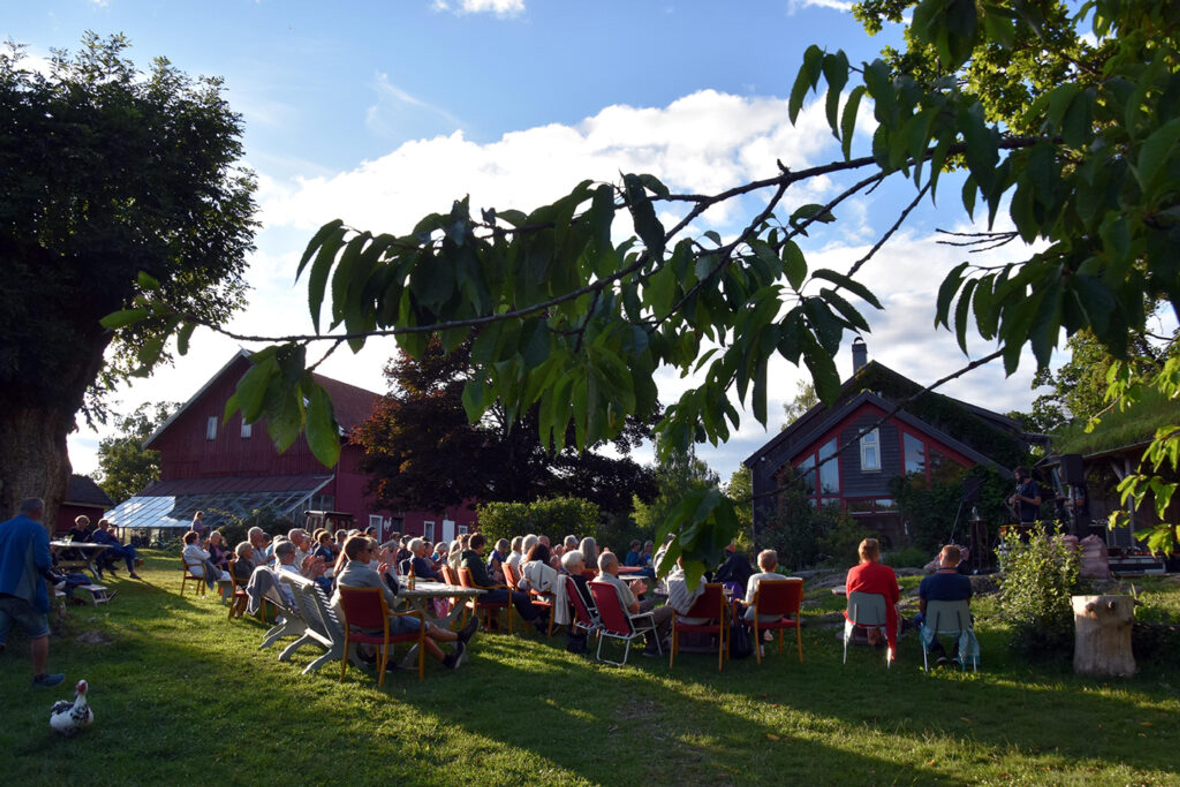 Det er begrensa med sitteplasser på tunet, så ta med eget sitteunderlag eller campingstol, råder vertskapet ved Holtbonden Roar Lefsaker og kona Rakel Skjerve.
