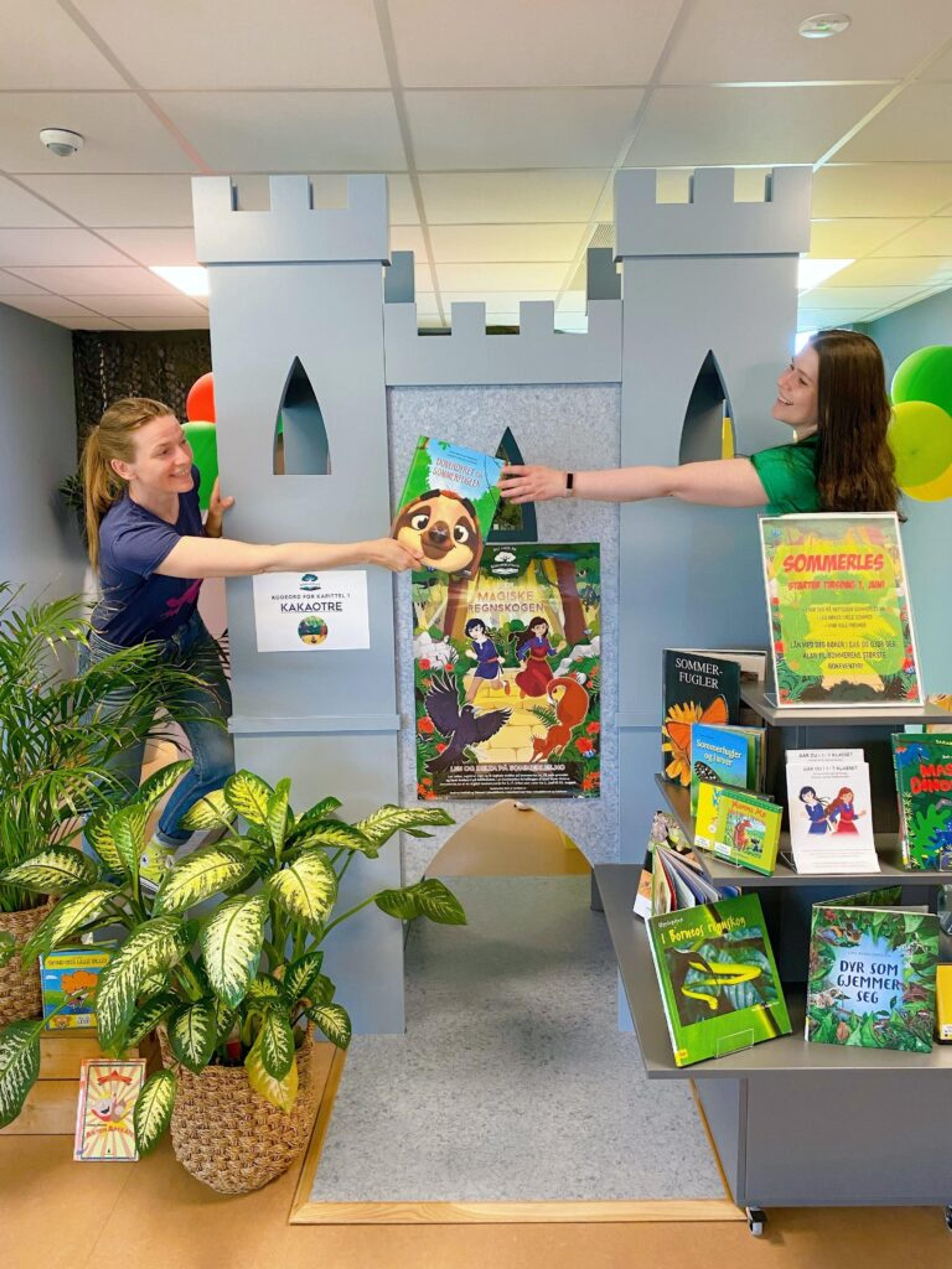 SOMMERLES-VEGGEN: Bibliotekmedarbeider Anne Stavnem von Krogh og bibliotekar Hege Kristin Beck. Foto: Revetal bibliotek.