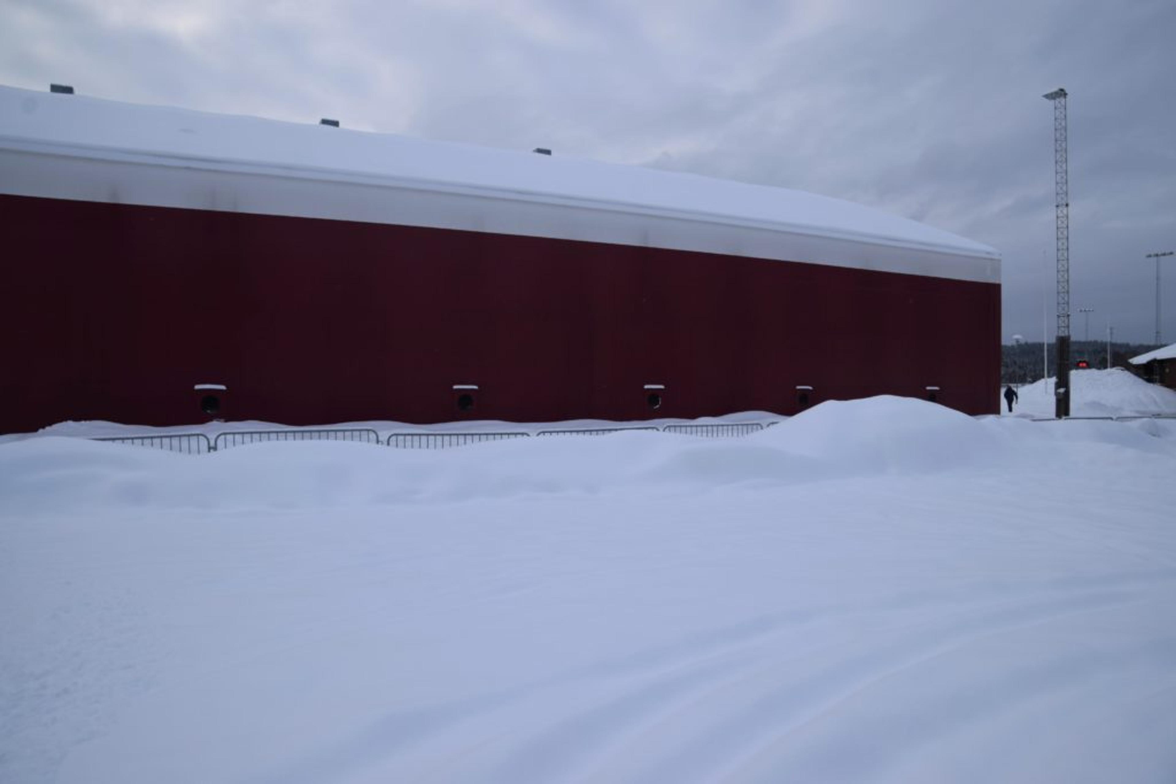 NEDSNØDD: Meny Arena ble måka fram på dugnad både lørdag og søndag morgen. Foto: Stian Ormestad.