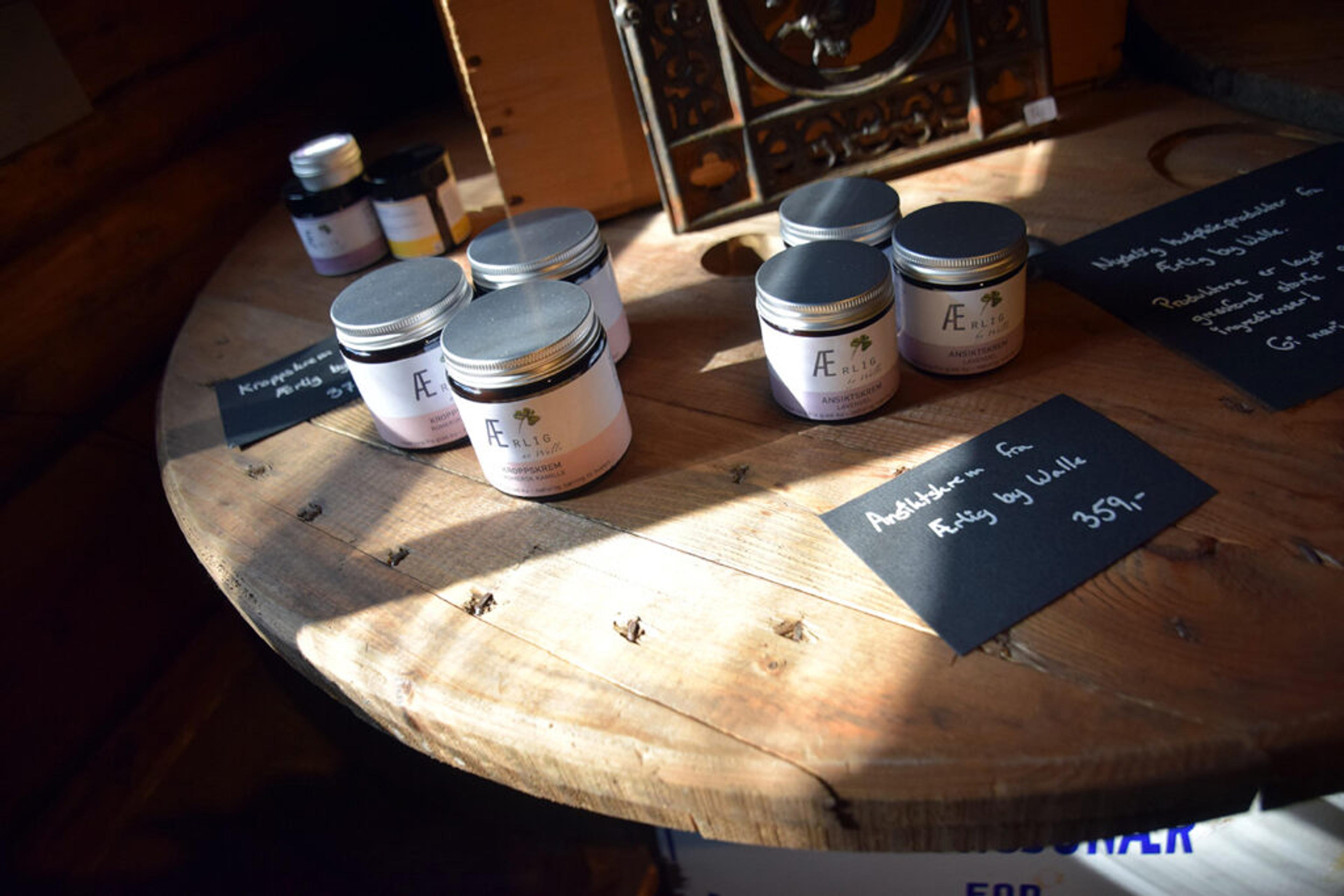Hygiene- og hudpleieprodukter laga på økologisk vis kommer fra gårder de samarbeider med. De er åpne for å selge flere varer, gjerne kjøtt fra gårder som produserer det – for det produserer de ikke sjøl på Kjær gård.