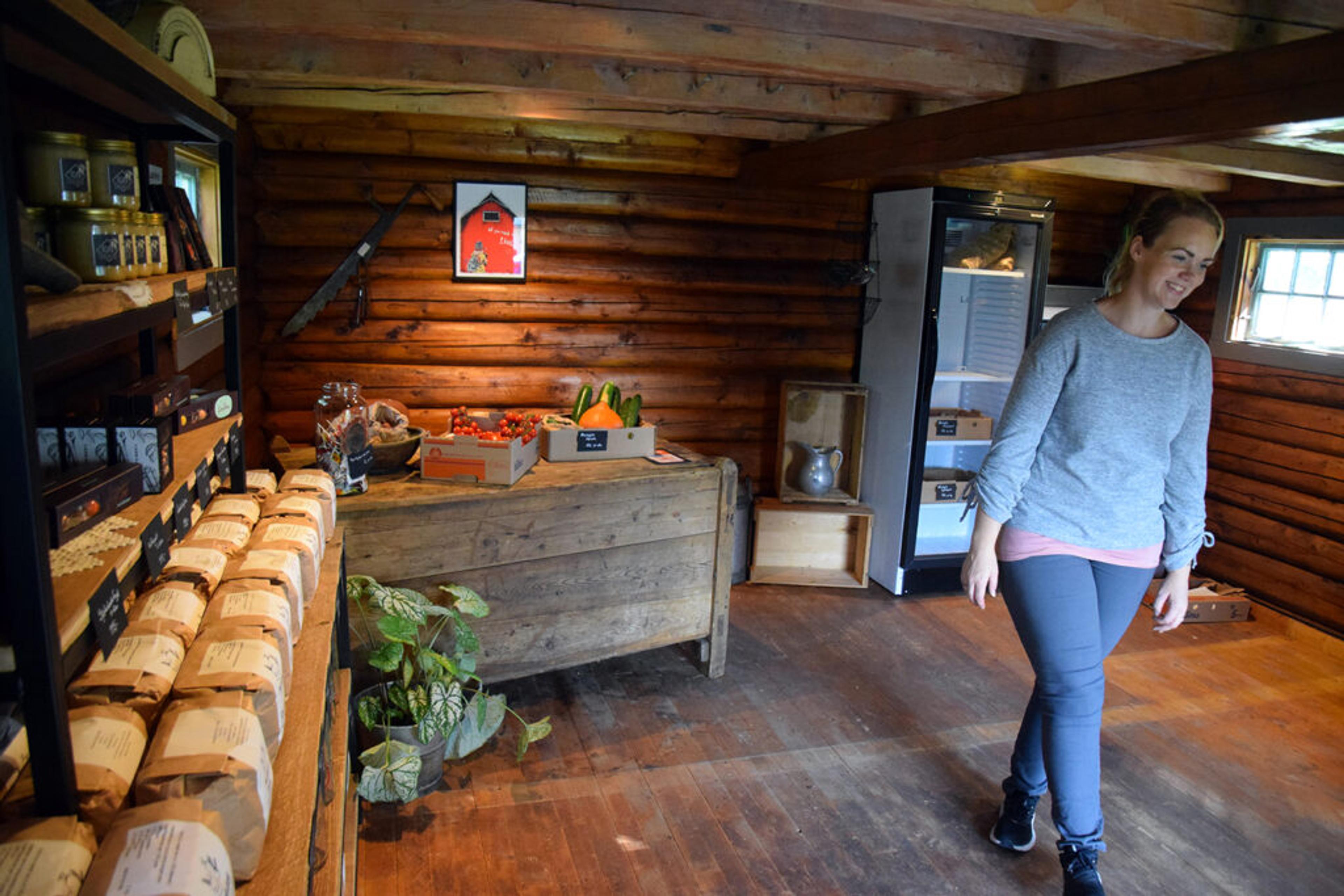 REINE KJØPESENTERET: Gårdsbutikken går over to etasjer i stabburet. Foto: Stian Ormestad.