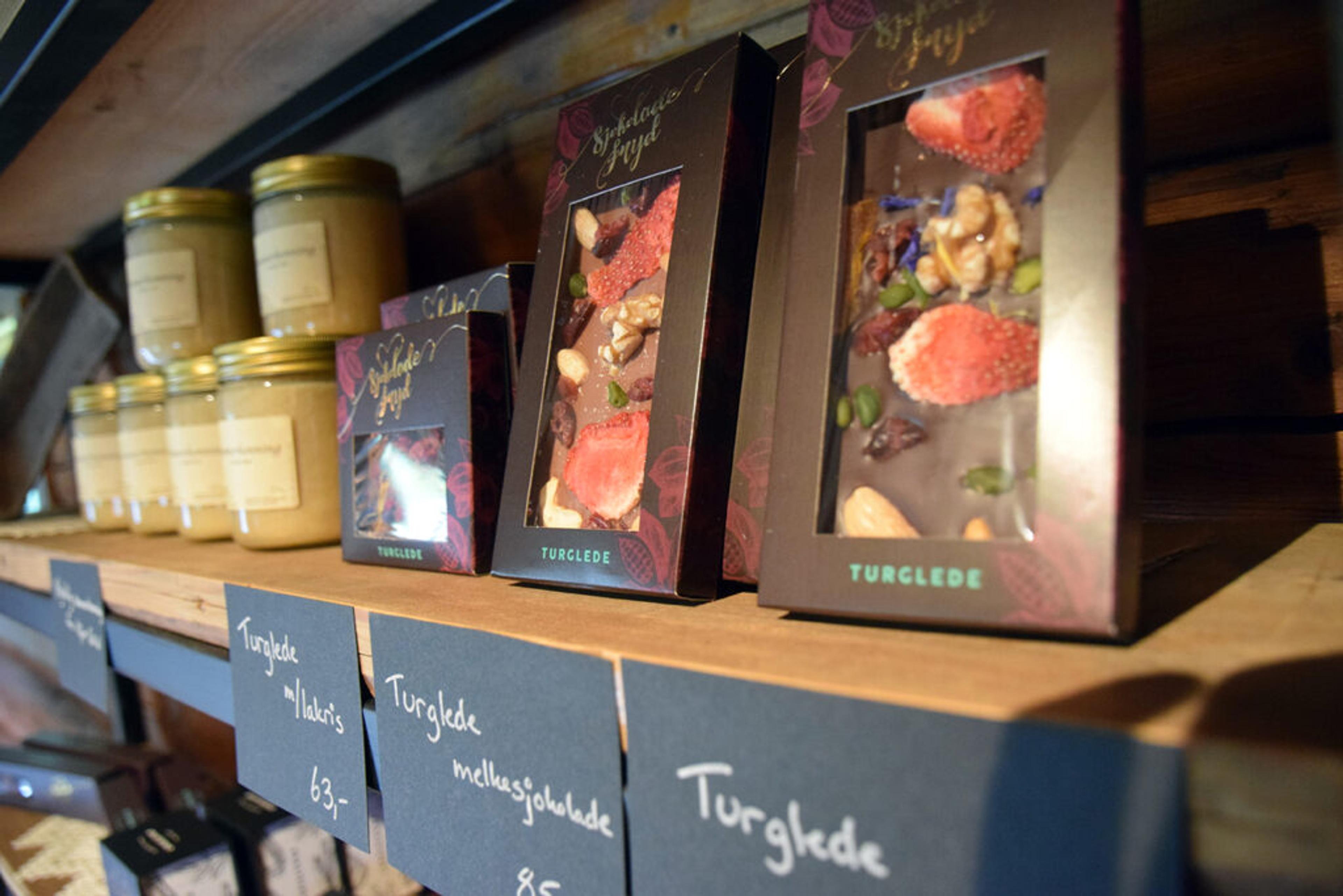 SJOKOLADE FRA SÆLBU: – Ikke kortreist, men veldig godt!, sier Maren og ler. Foto: Stian Ormestad.