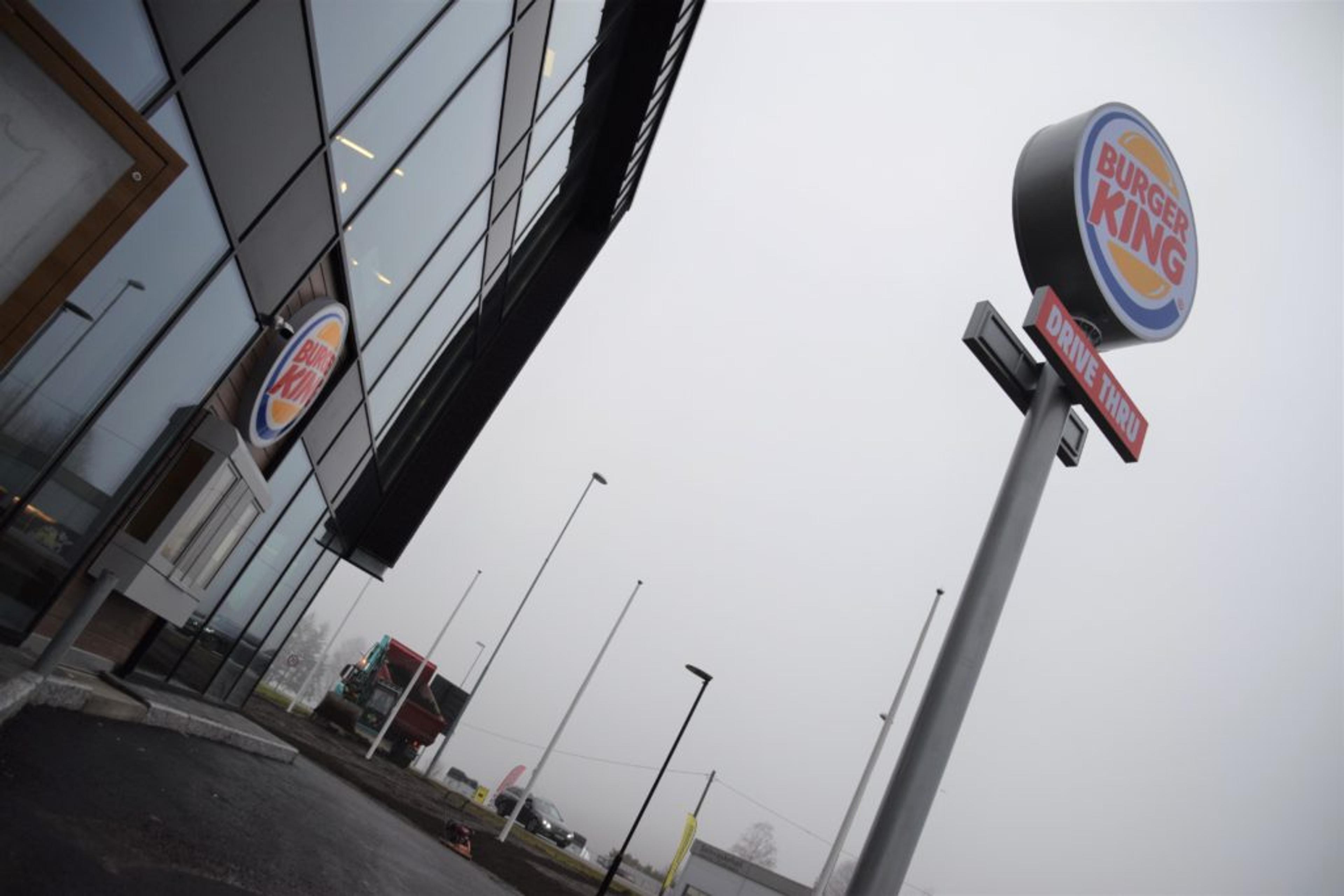 BURGER KING PÅ REVETAL: Første åpningsdag er torsdag 22. november 2018. Først denne uka kom skiltene opp – og det største skiltet har skapt reaksjoner både for og i mot. Foto: Stian Ormestad.