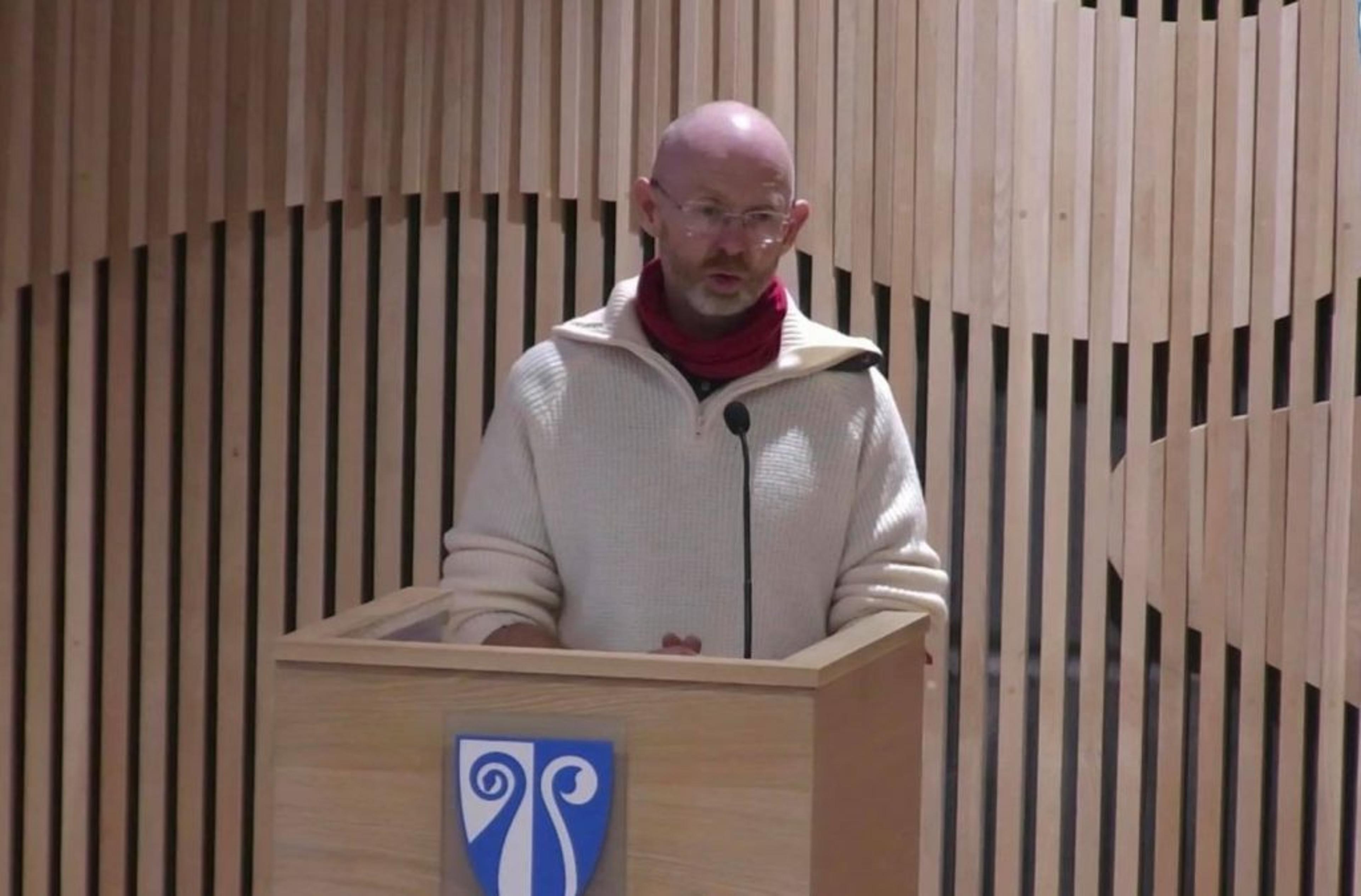 KOMMUNEOVERLEGE: Sigmund Skei orienterte kommunestyret i nye Tønsberg kommune onsdagskvelden 11. mars. Foto: Tønsberg kommune.
