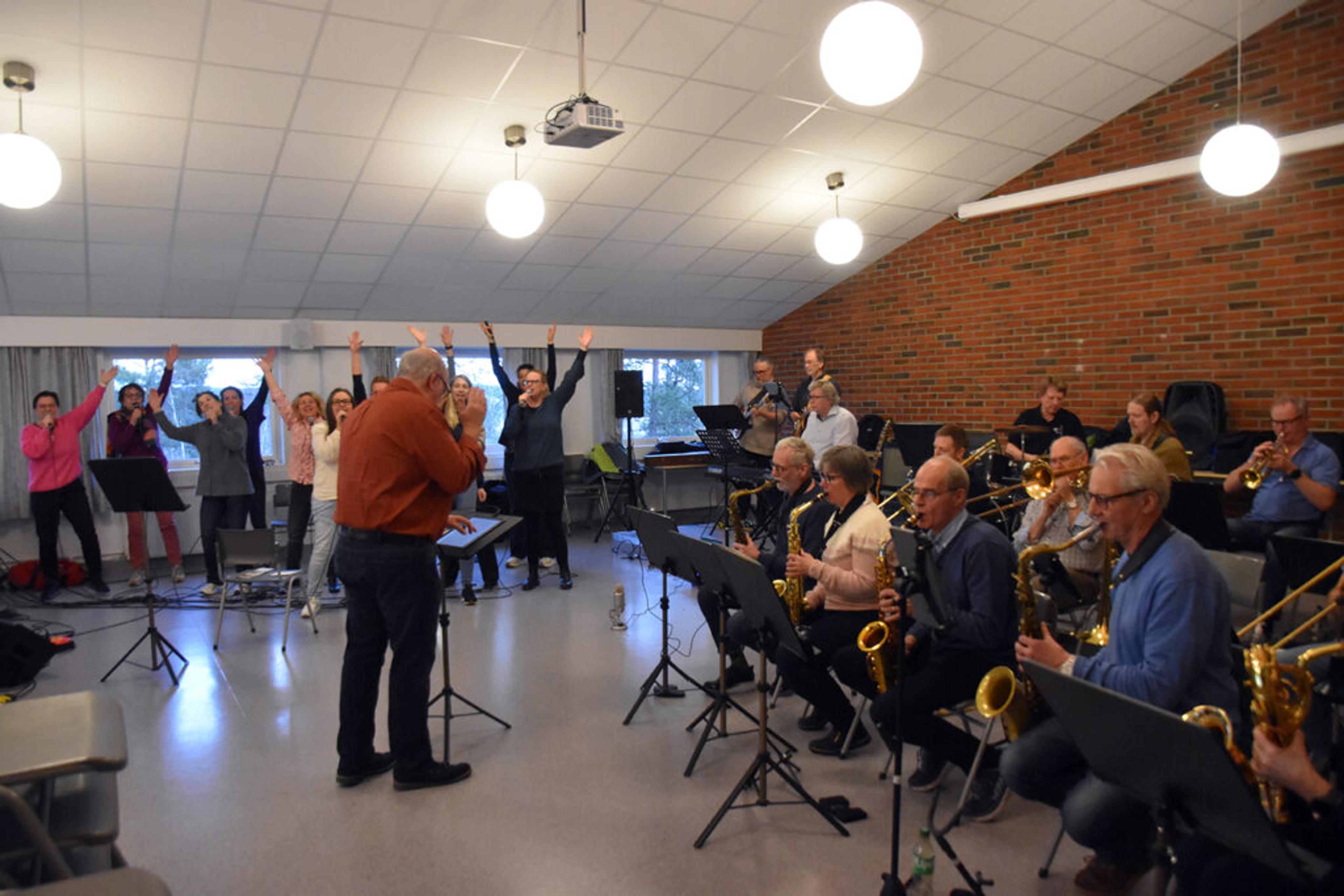 GENERALPRØVE: Storbandet Fokus tester stadig ut noe nytt, har god tilvekst, og beholder sin dyktige dirigent og faste vokalist. Foto: Stian Ormestad, ReAvisa.