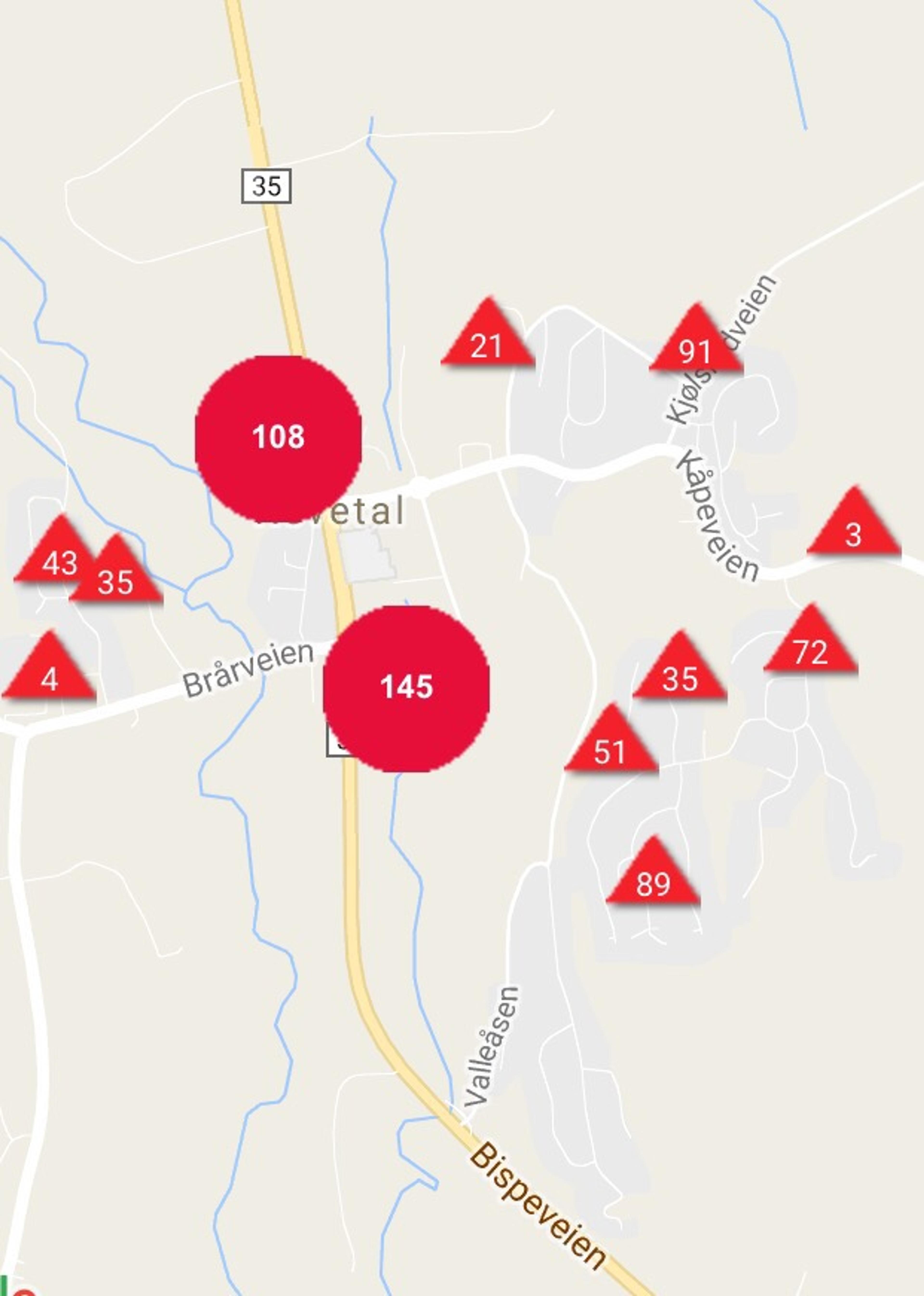 Ifølgeavbruddskartet til Skagerak Nett ASer 697 kunder uten strøm i skrivende stund.