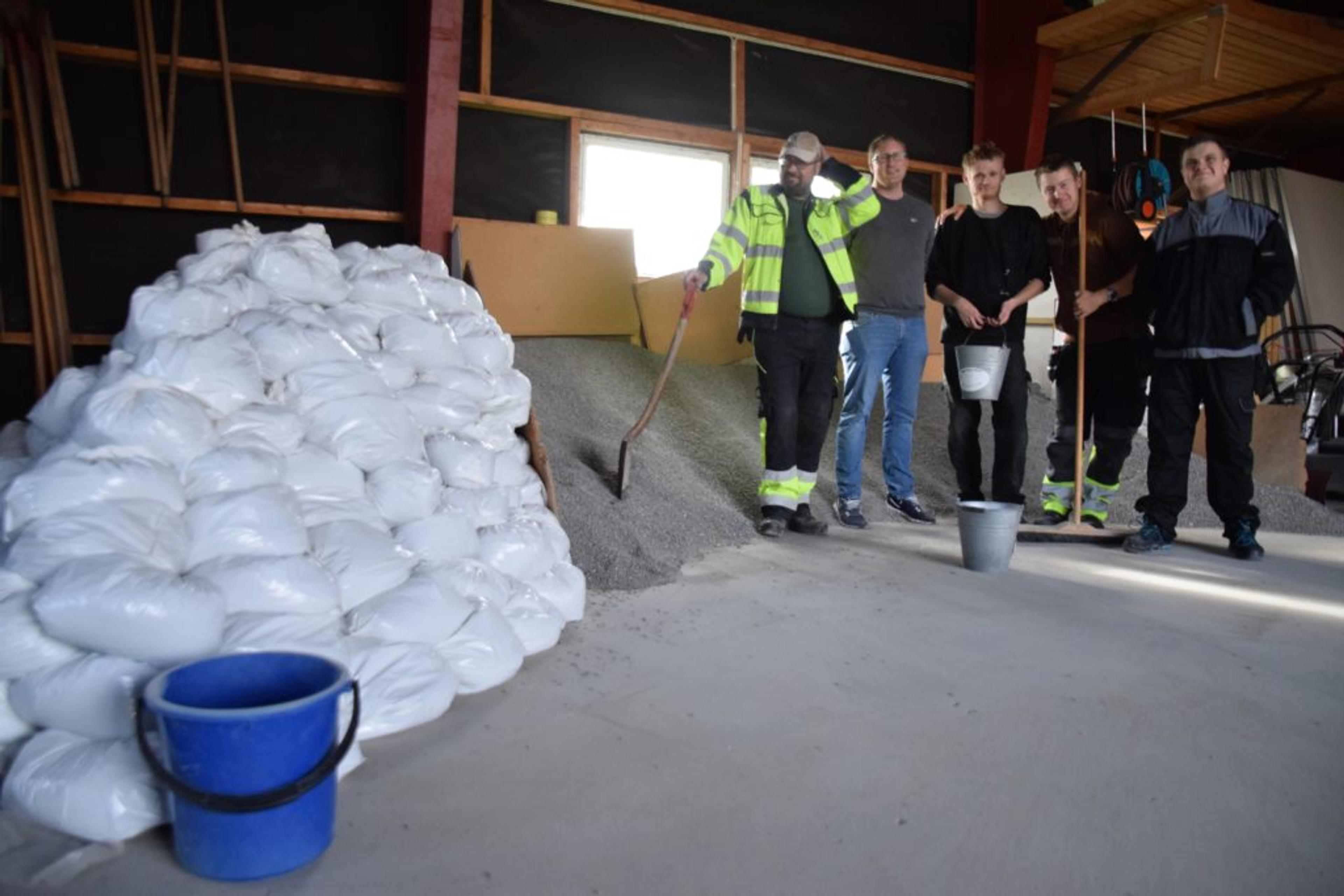 NESTEN 1.000 BØTTER: Denne gjengen spadde strøsand i bøtter og i poser for fem år siden. Det året ble det også lagt gratis brodder med bøtta. Foto: Stian Ormestad, ReAvisa.