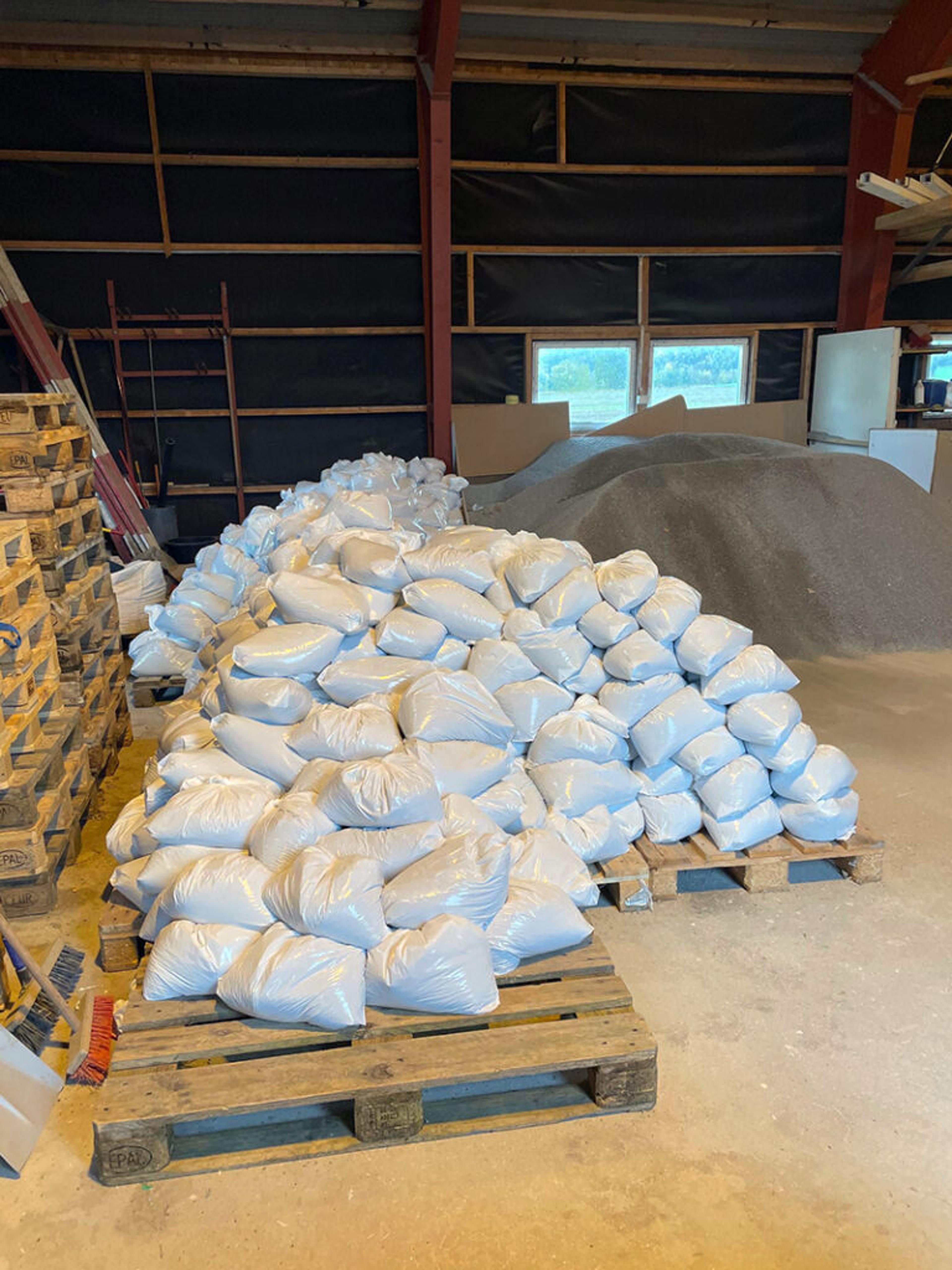 KAN HENTE PÅ OLGARS: Strøsand er tilgjengenlig, sjøl om det ikke blir levert til de fleste pensjonister i Re lenger. Foto: Stian Ormestad, ReAvisa.