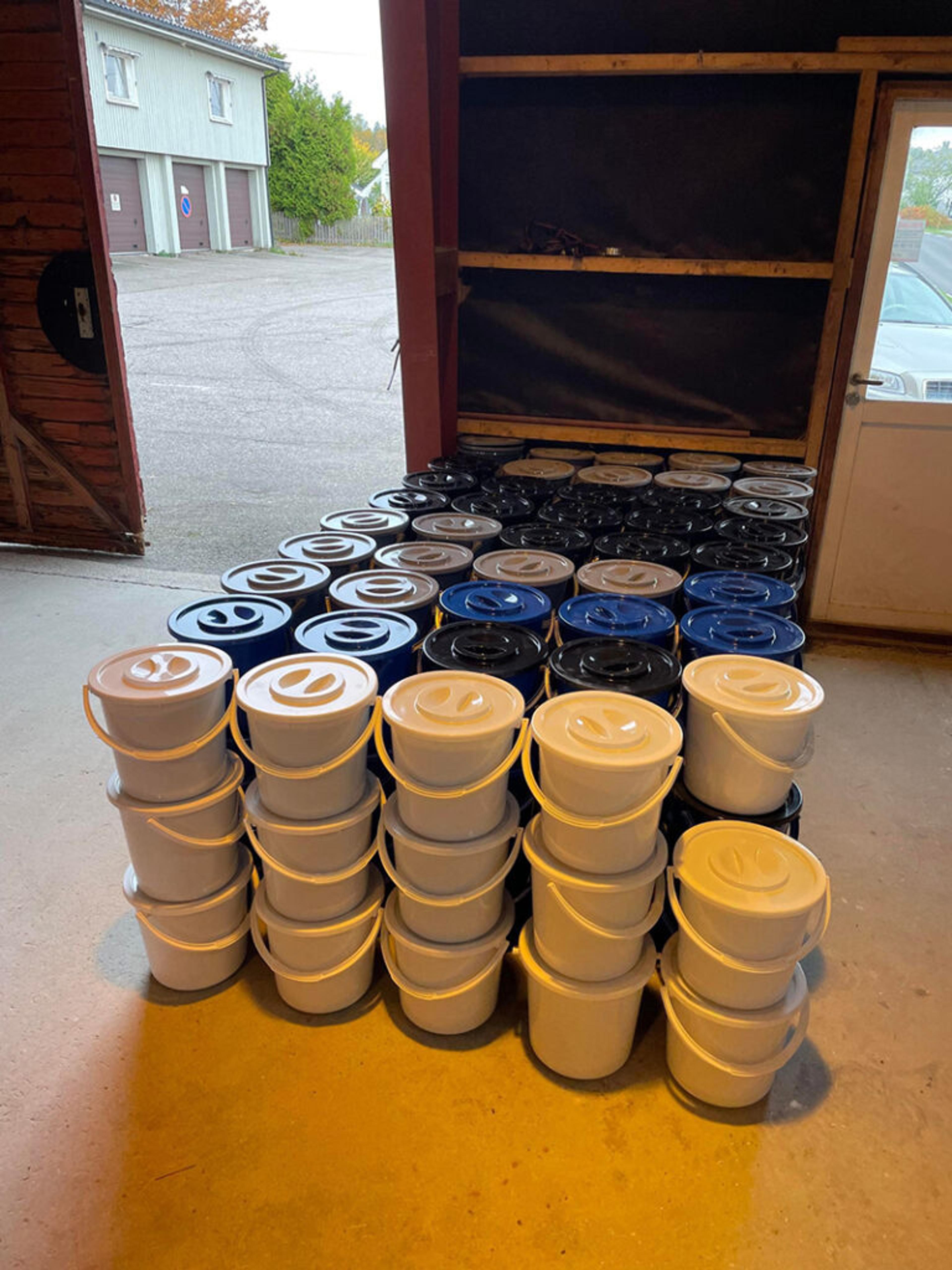 BØTTE PÅ BØTTE: Men godt over en halvering av antallet som kjøres ut i år, anslår de frivillige i prat med ReAvisa. Arkivfoto: Privat.