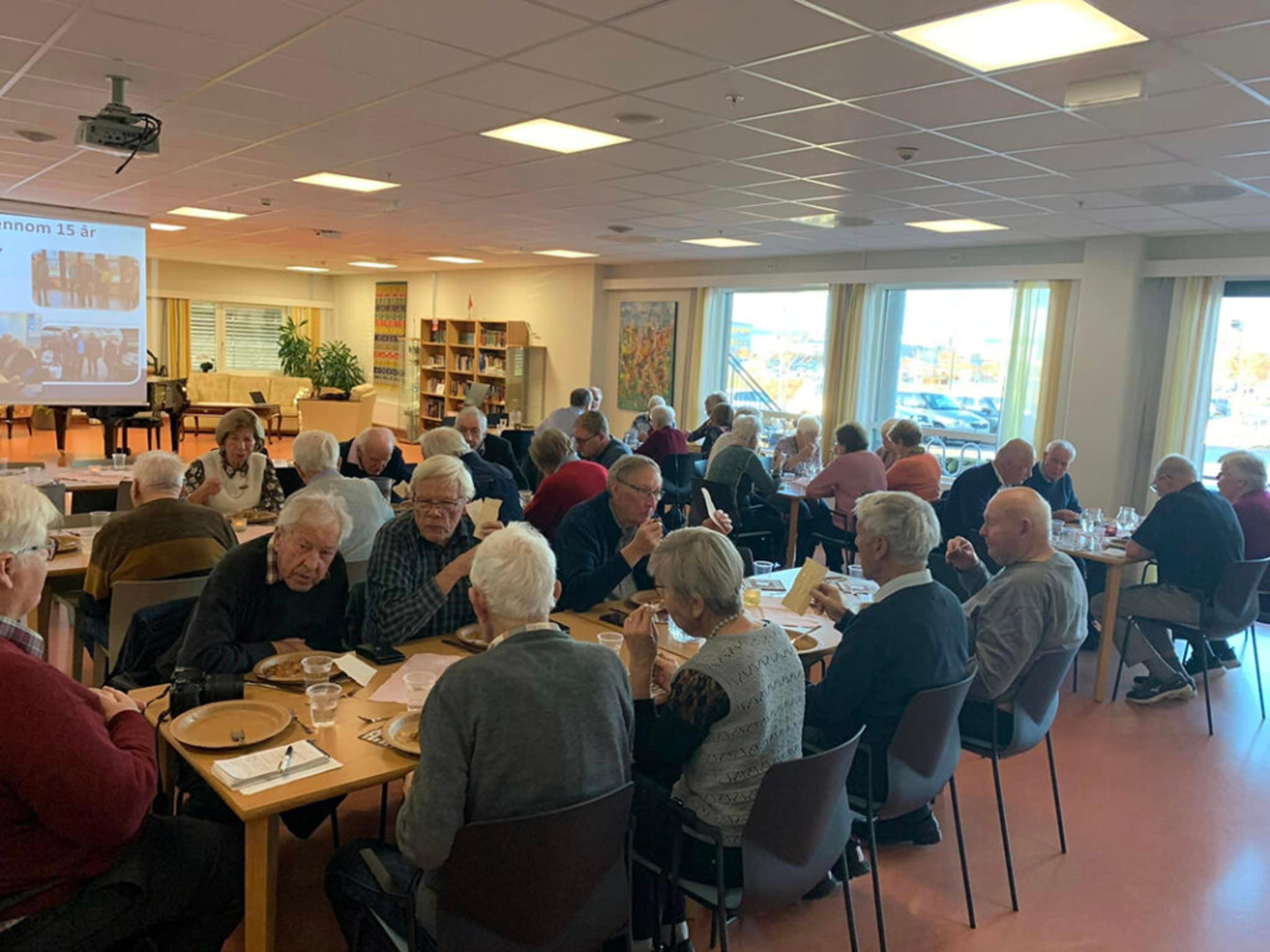 SEKSTI FRIVILLIGE HEDRET: Frivilligfest etter femten år med sandbøtteprosjektet i Re i fjor, med seksti dugnadsfolk tilstede på Re helsehus. Foto: Håkon Westby, ReAvisa.