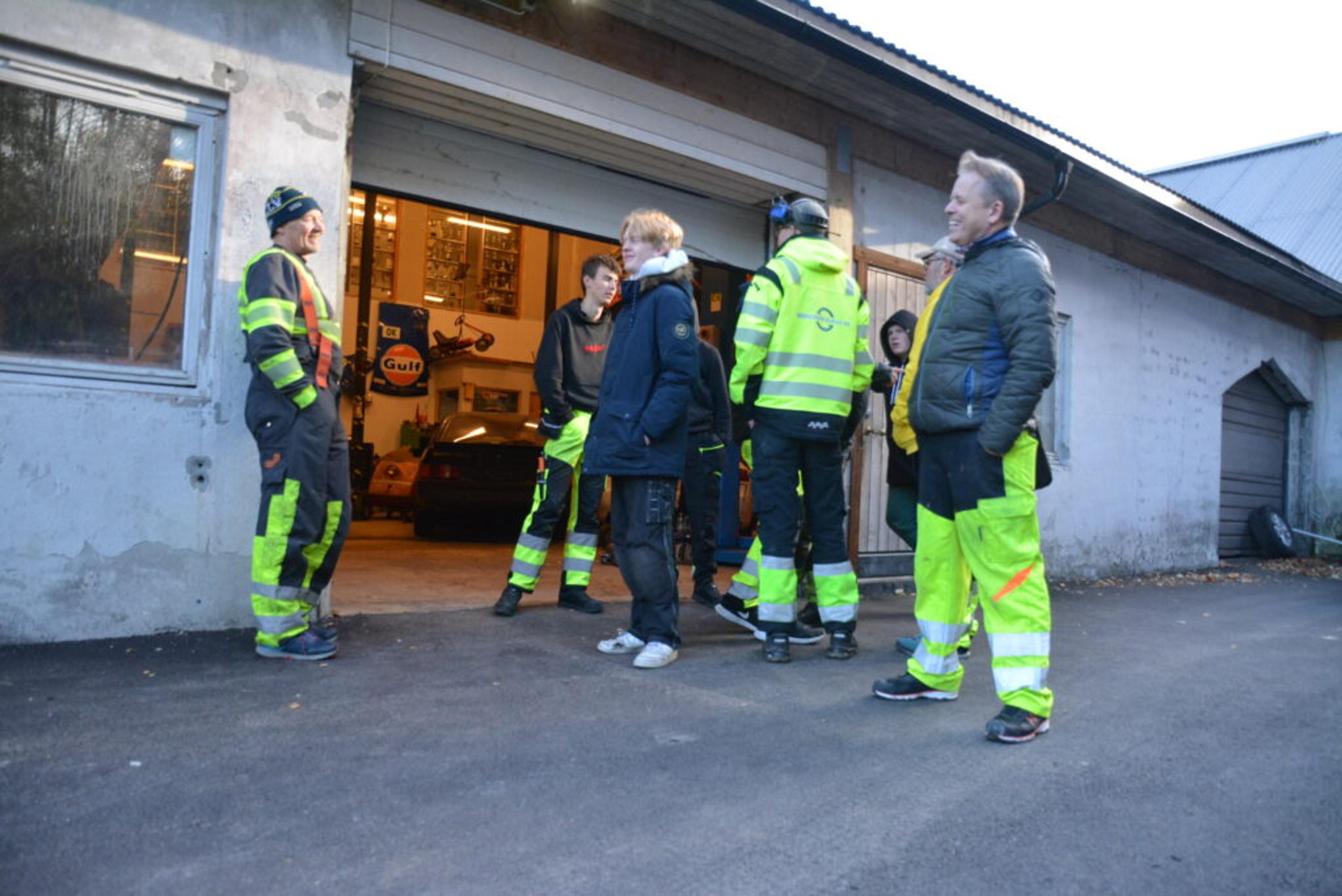 STYRKEKLASSEN: En dag i uka legges skoledagen til Håsken og mekkeverkstedet til Tom Heitmann fra Hjerpetjønn. – Det er mye matte i motor-ting, sier en fornøyd gjeng med Revetal ungdomsskole-elever. Foto: Stian Ormestad.
