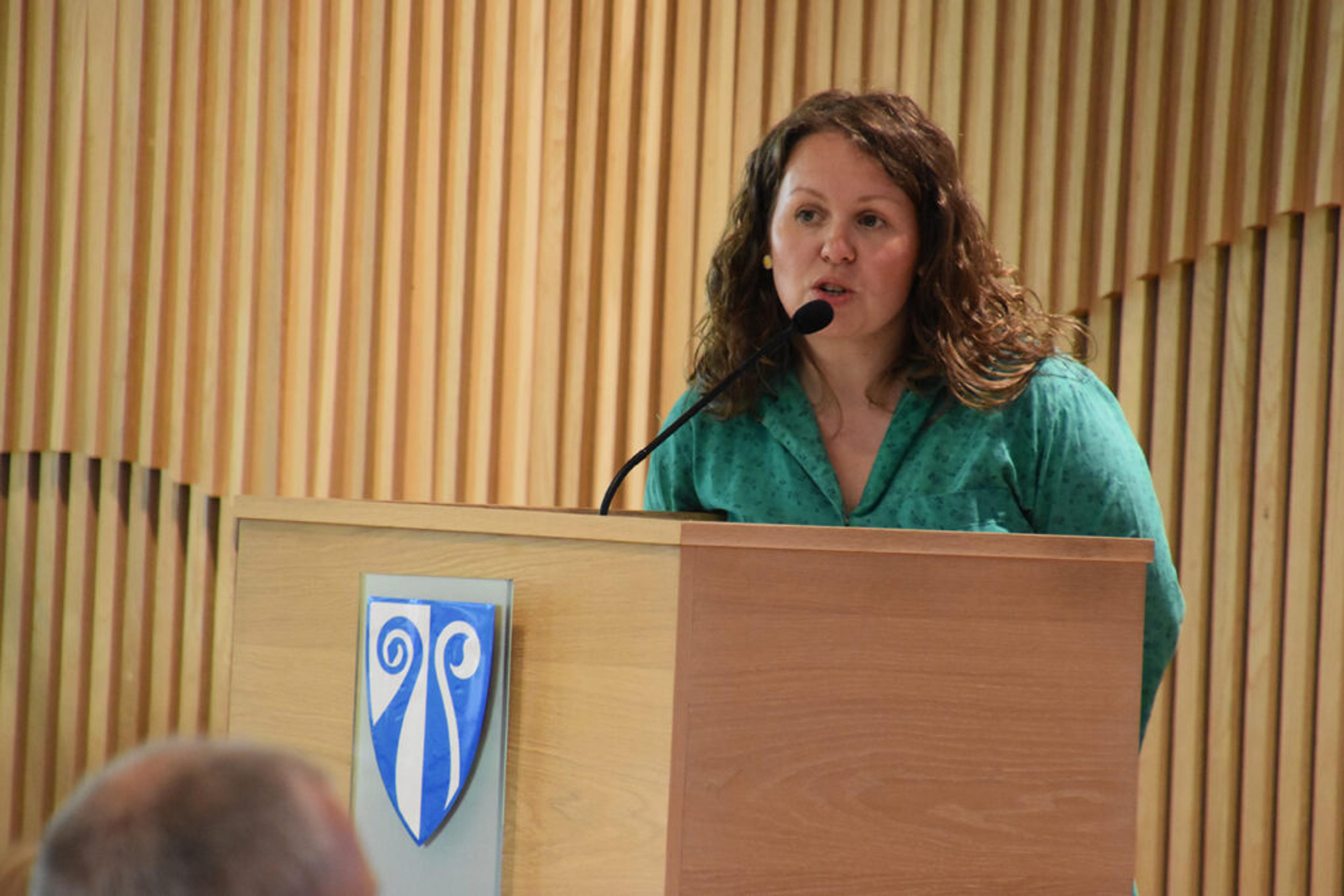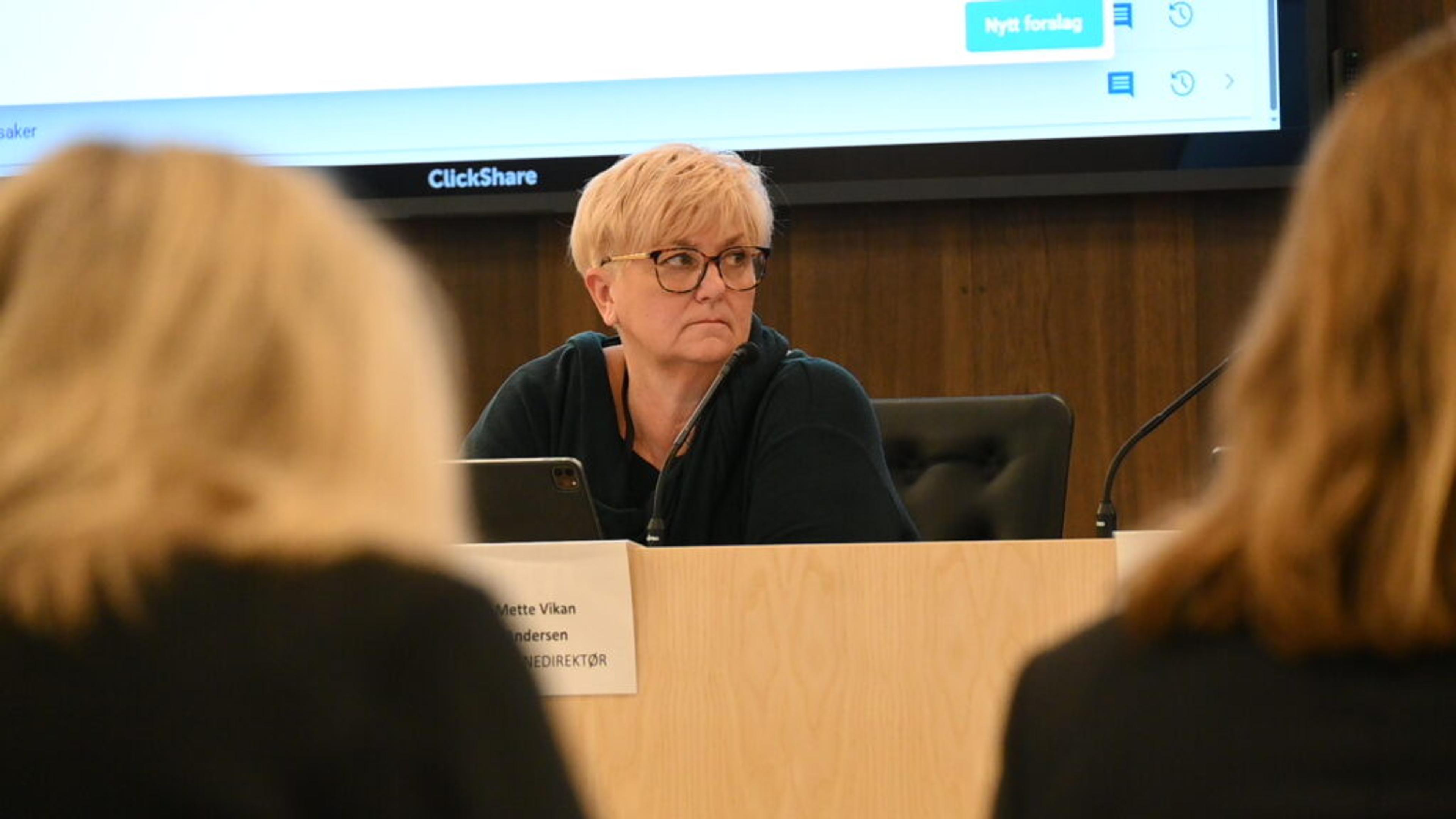 DYSTRE UTSIKTER: Mindre inntekter og større utgifter, det er utfordringa for Tønsberg kommune. På bildet ser vi kommunedirektør Mette Vikan Andersen under det siste kommunestyremøtet. Foto: Stian Ormestad, ReAvisa.