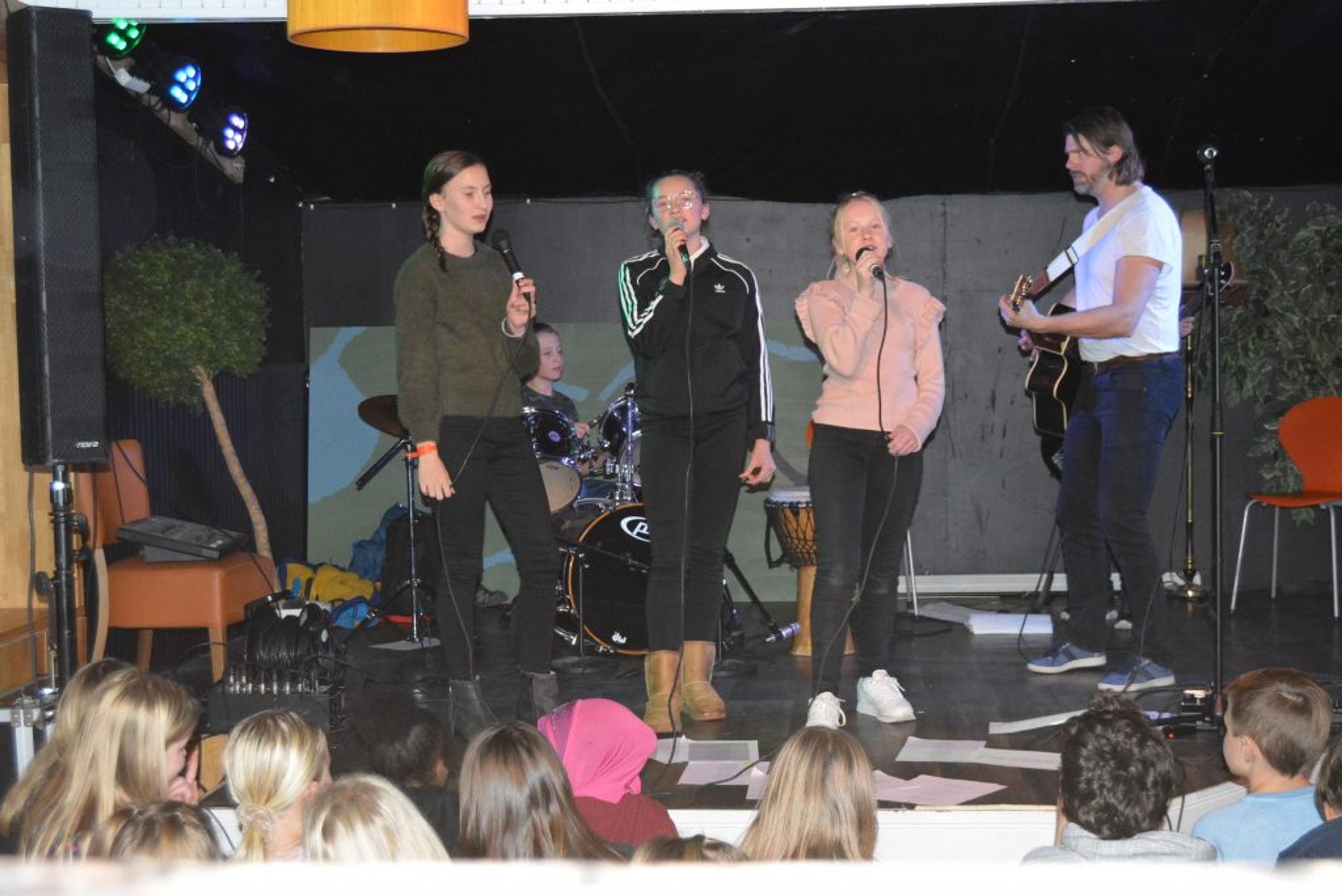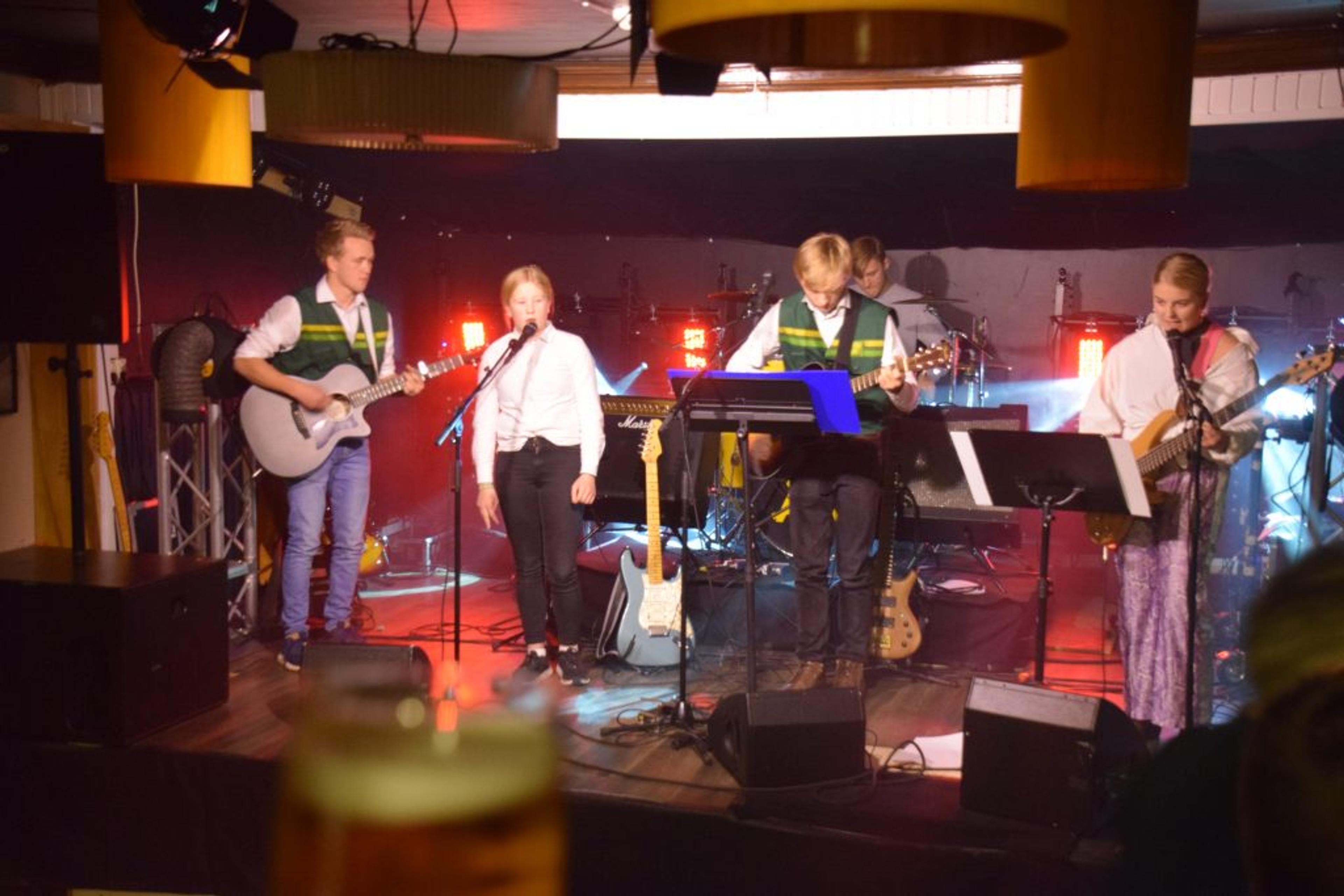 Den yngste på den nyoppussa scenen var 6 år gammel, og den eldste var 14 år. De serverte flott musikk, alle som en, utover en høstmørk fredag kveld.