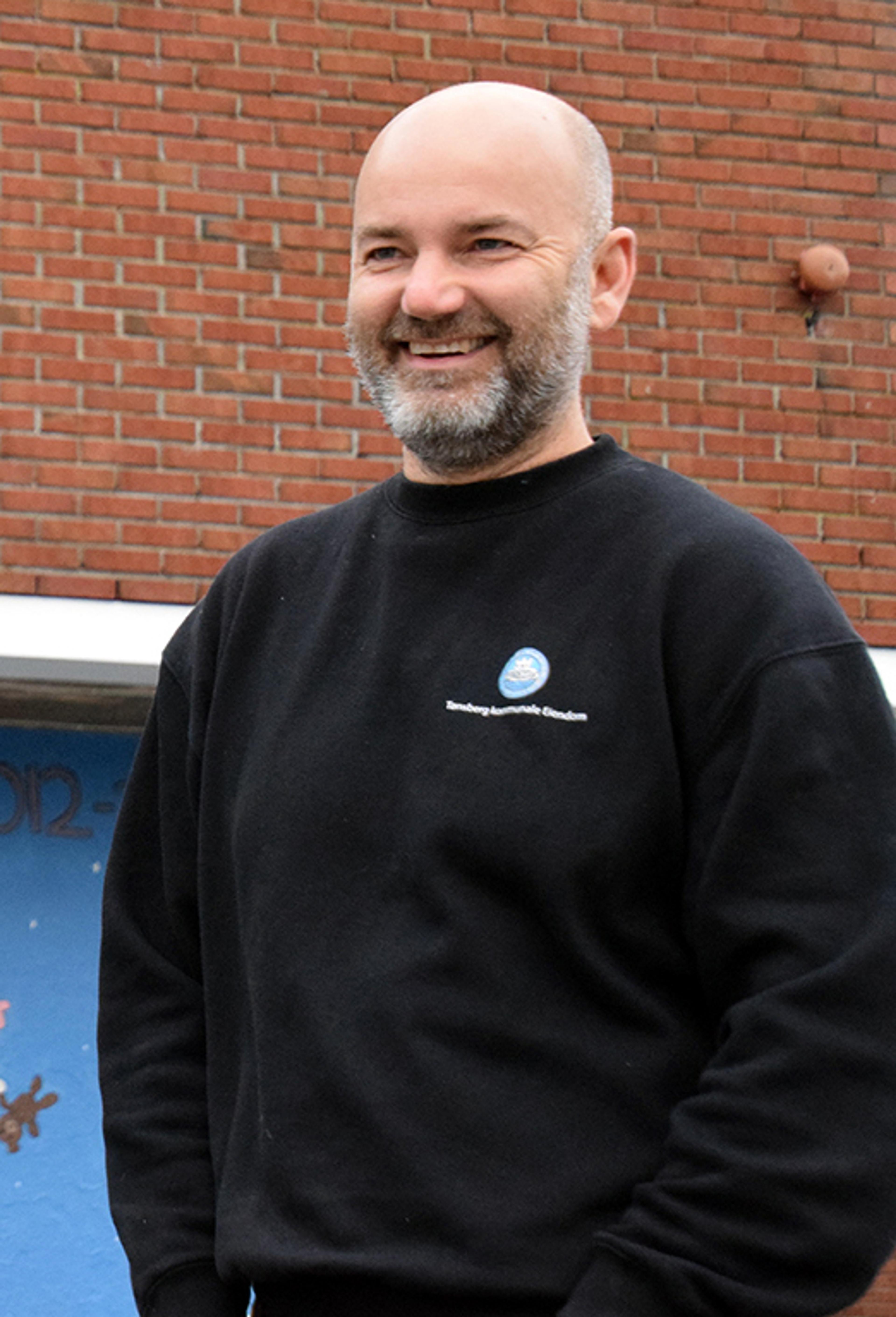 TRIVES I JOBBEN: Sven Førsund, vaktmester på Ramnes skole. Foto: Stian Ormestad.