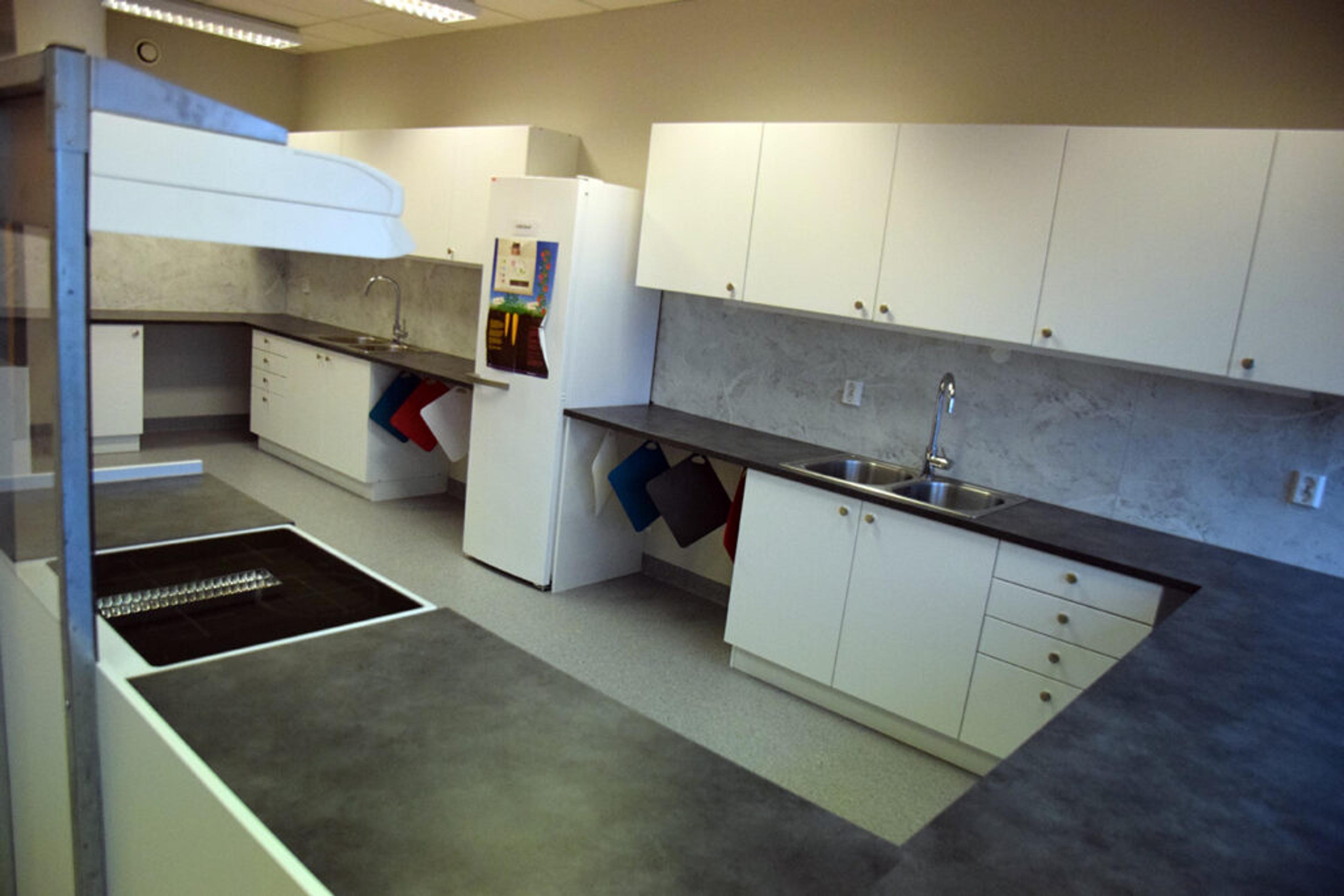 NYTT SKOLEKJØKKEN: Med korona-kroner fra sentralt hold til kommunen har det blitt råd til et splitter nytt skolekjøkken på Ramnes skole. Foto: Stian Ormestad.
