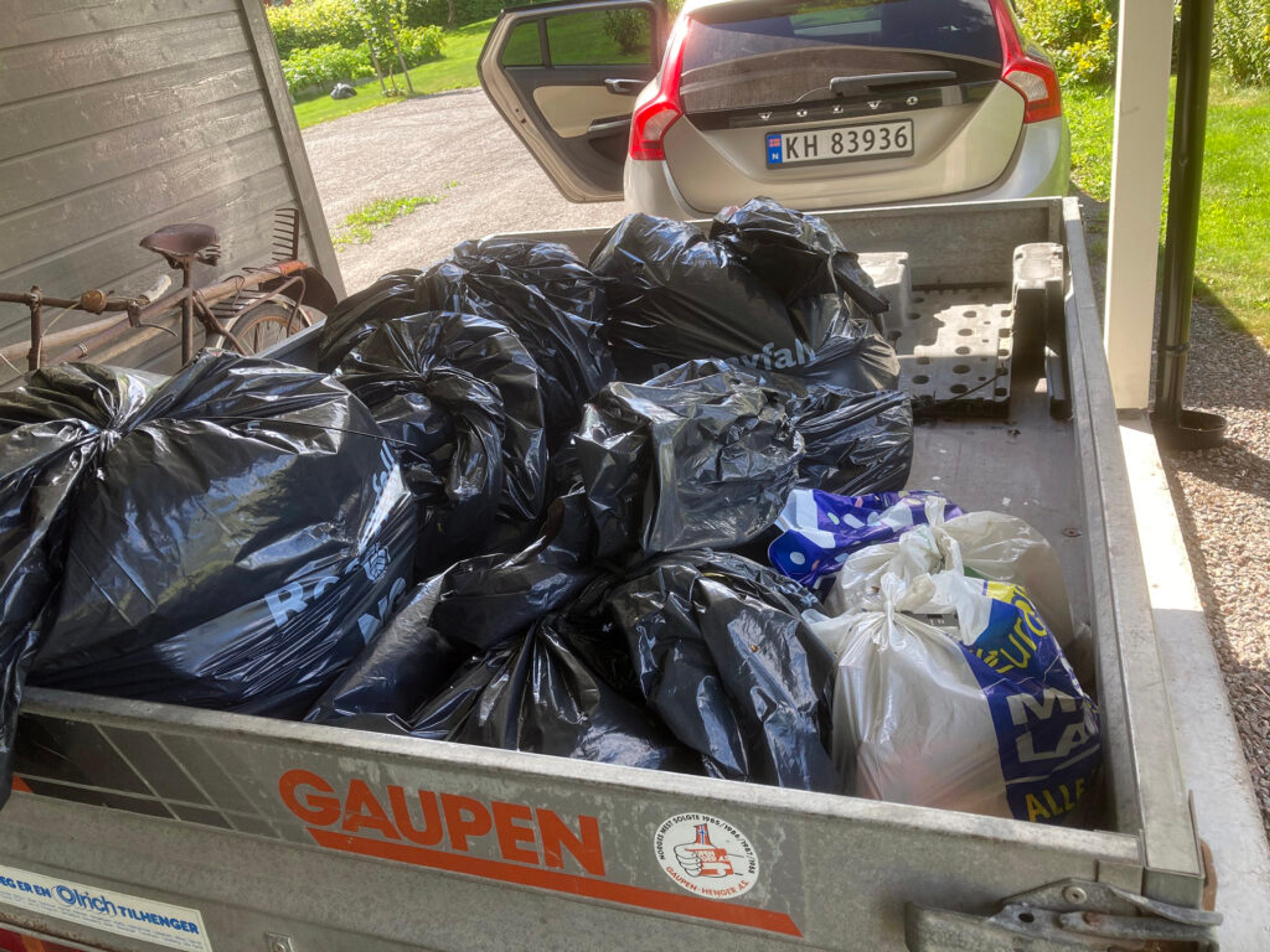De seks søppelsekkene, ett par bæreposer med blant annet gamle 8 mm pornofilmer, en pall, og restene av noen campingstoler, var relativt enkelt å lesse opp i tilhengeren og kjøre til Nordre Foss.