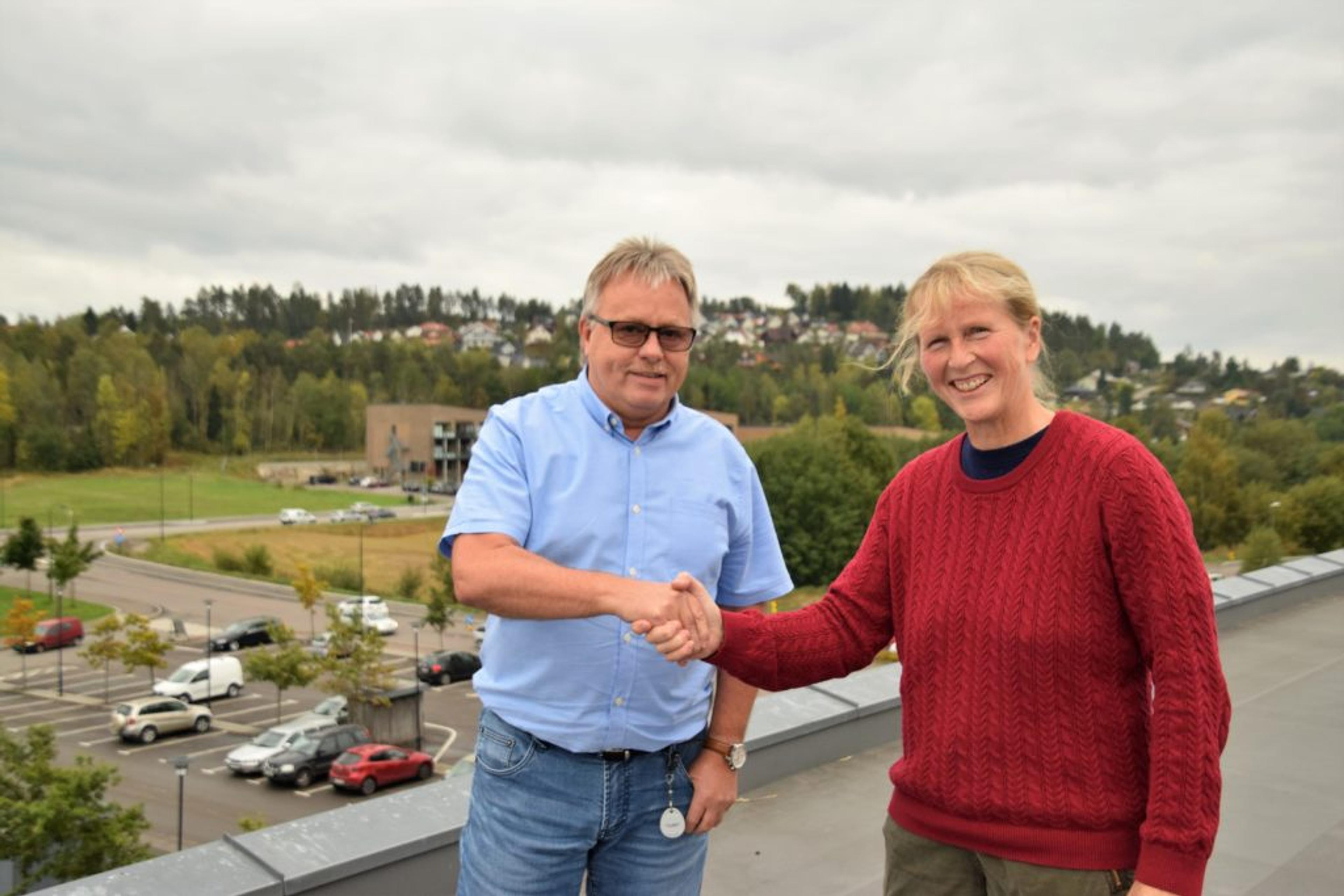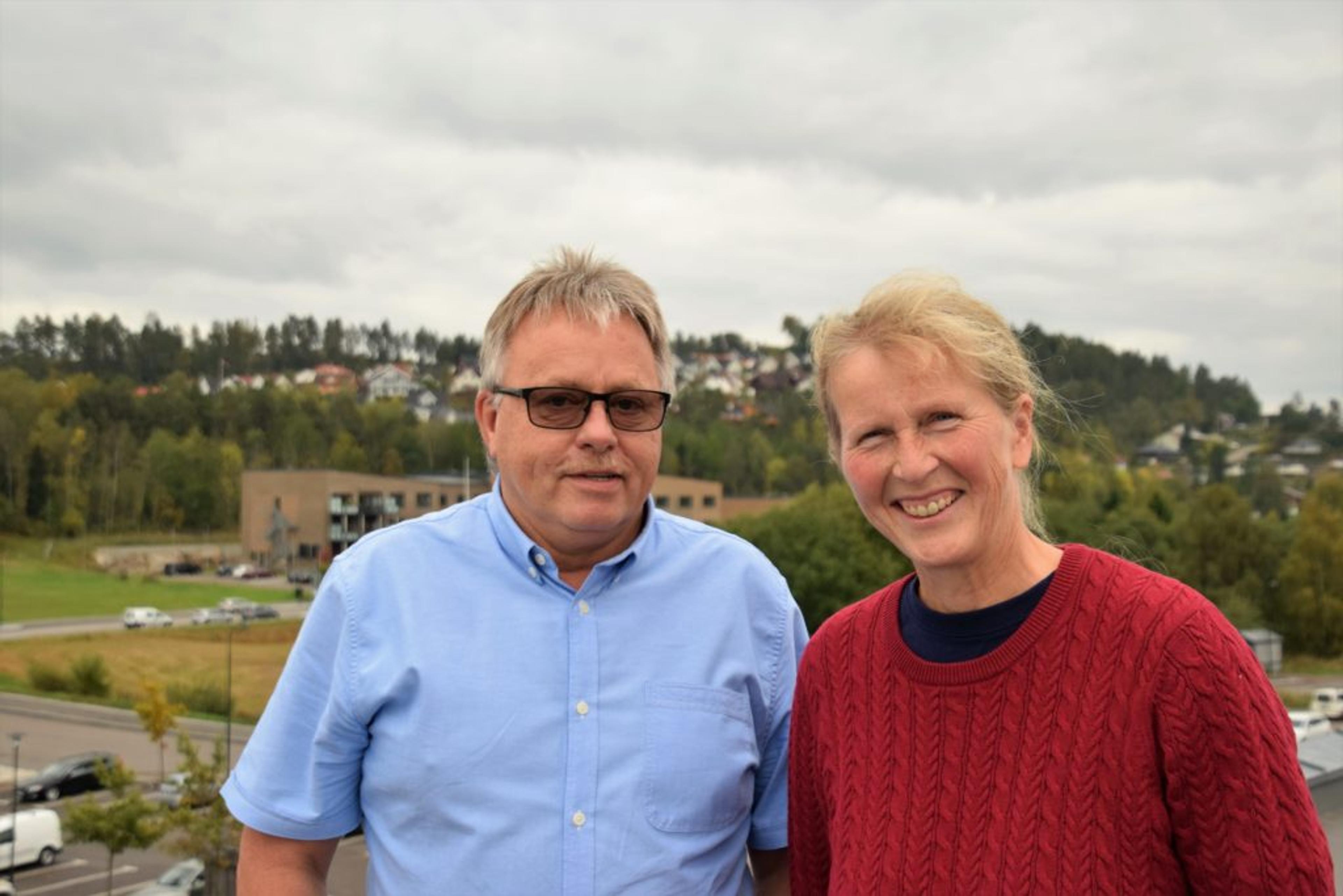 – VI GLEDER OSS! Rolf Lønnum, virksomhetsleder for teknikk- og næringstjenester i Re kommune, og Anne Beate Hekland, virksomhetsleder for kommuneutvikling i Tønsberg, har trua på bedre arbeidsdager for de ansatte og bedre tjenester til innbyggerne – og spesielt bønder og næringsdrivende. Foto: Stian Ormestad.
