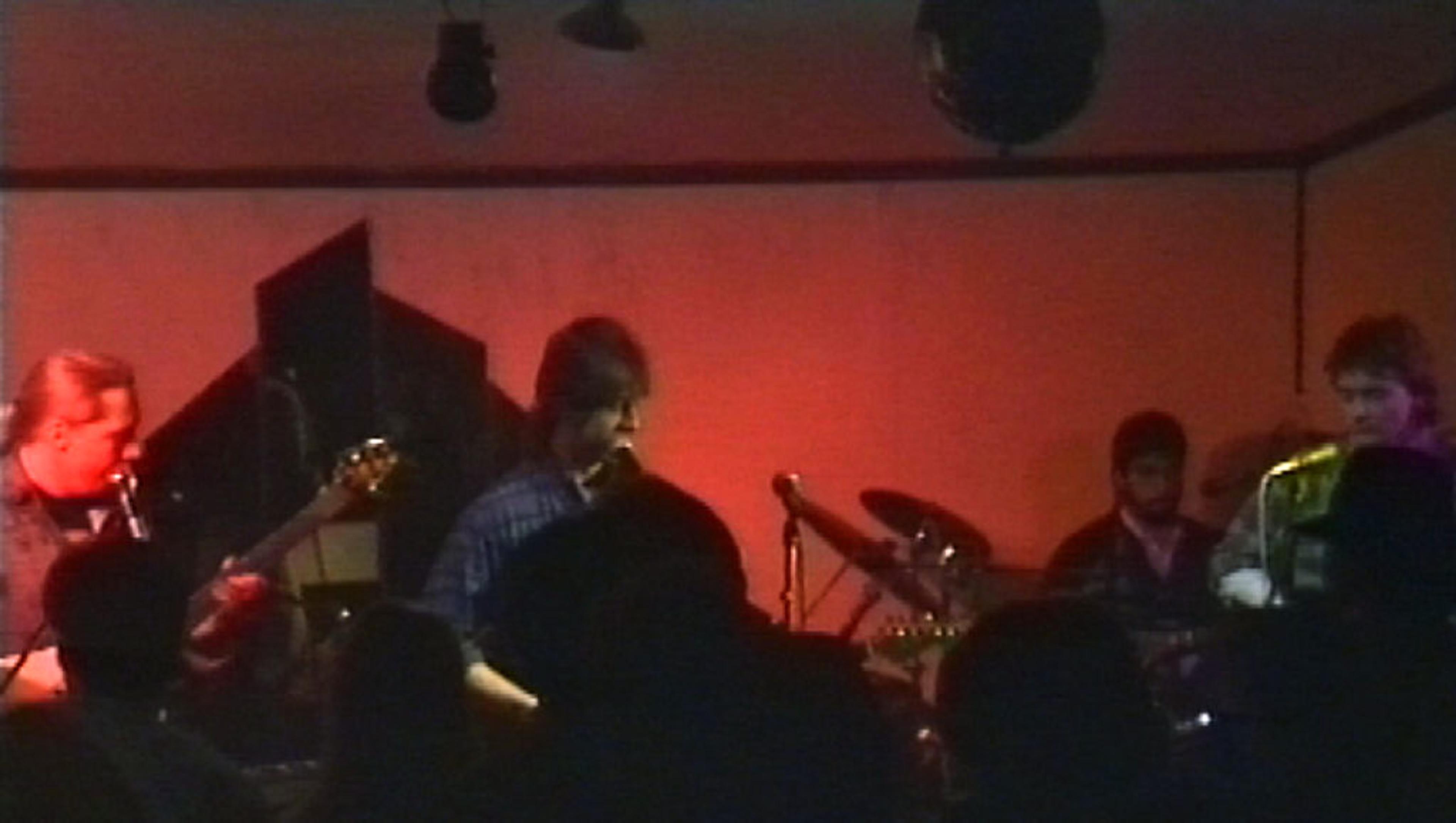 SPILLER PÅ STASJON: The Dix består av Rune Lie, Jan Gunnar Ringen, Erik Firing og Sigurd Johnsen. Erik var her erstatta av Reidar Ektvedt på trommer. Bildet er fra en film fra opptreden i 1994. Da var det stappa fullt, nå håper gutta på passe fullt – siden det er kommet noen brannforskrifter siden sist. Foto: Privat.