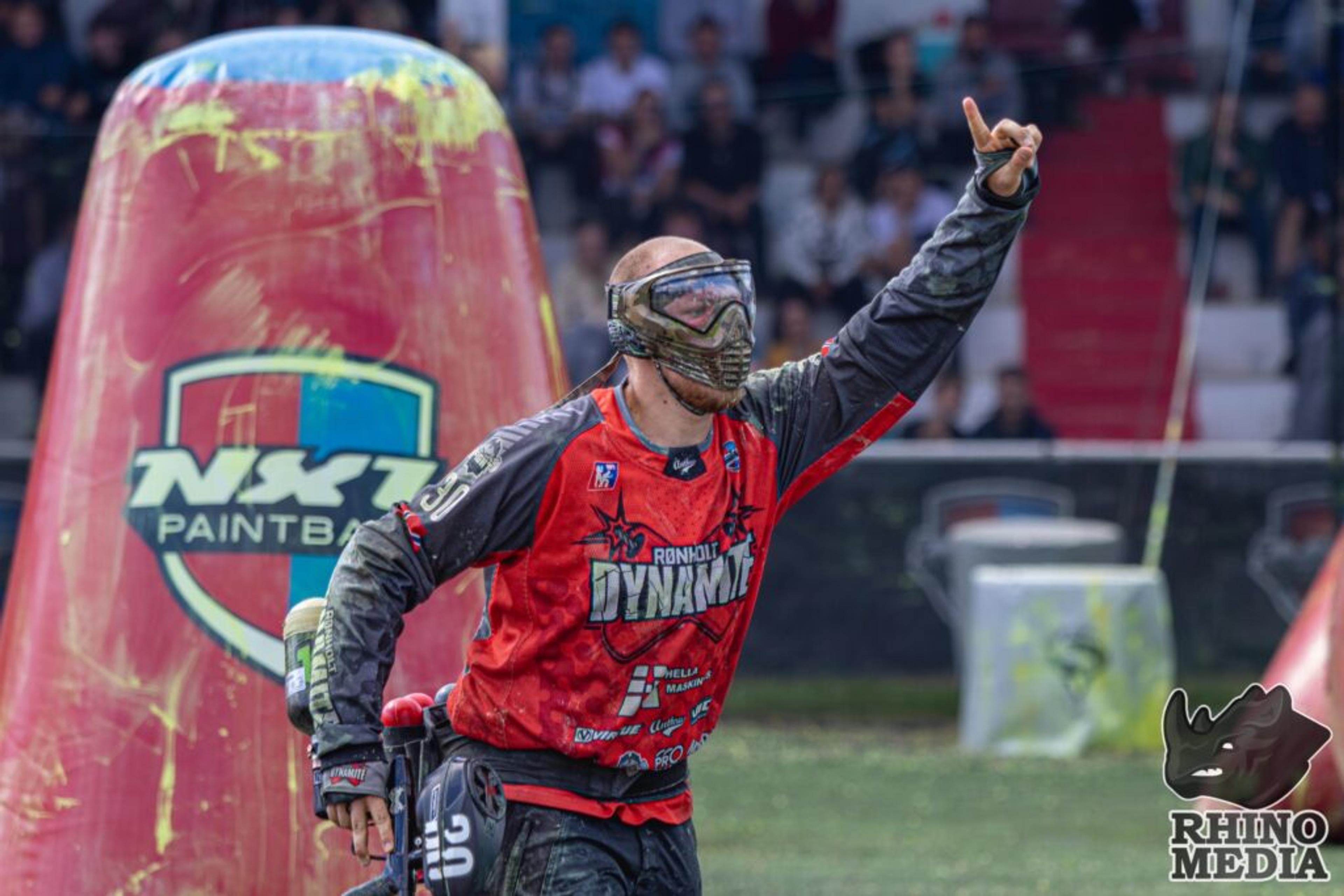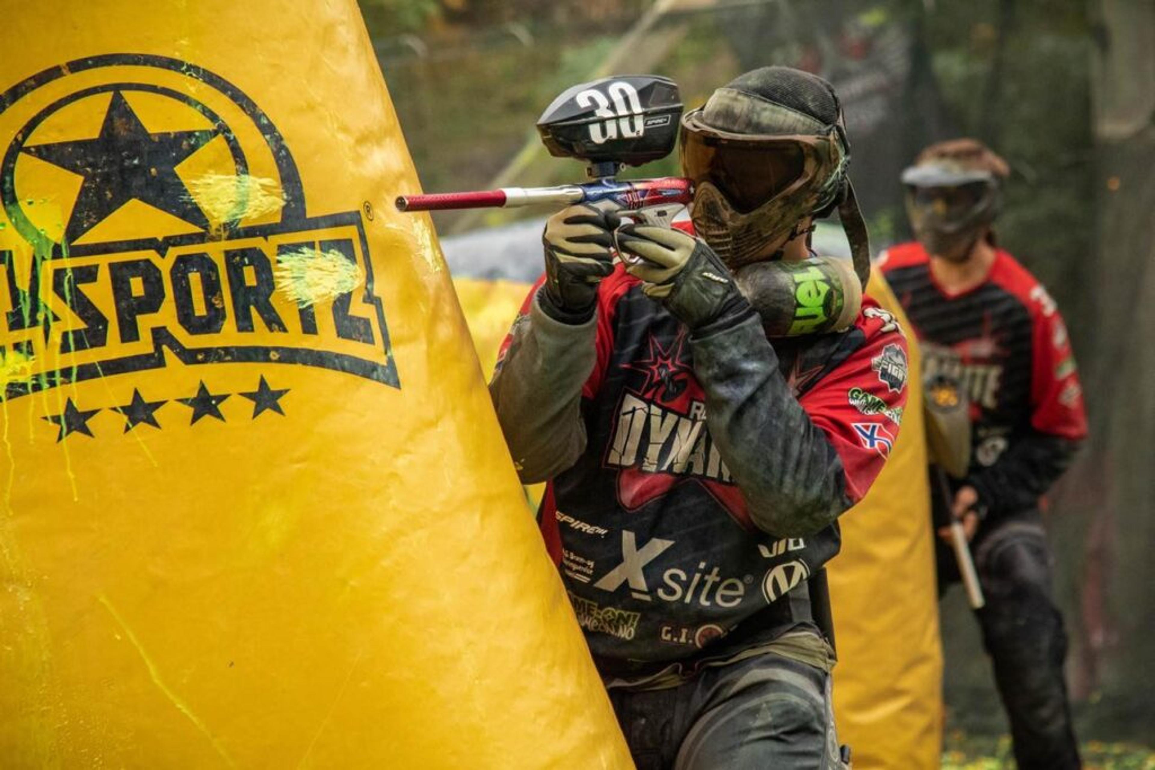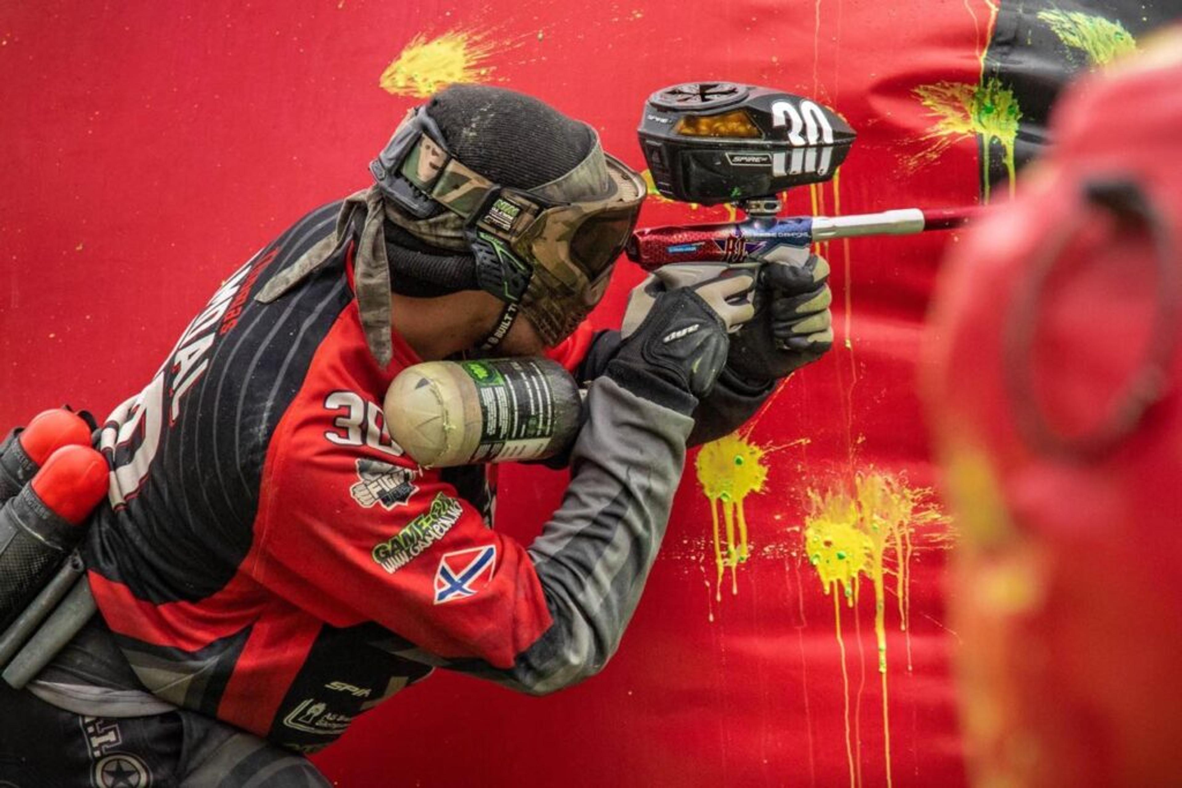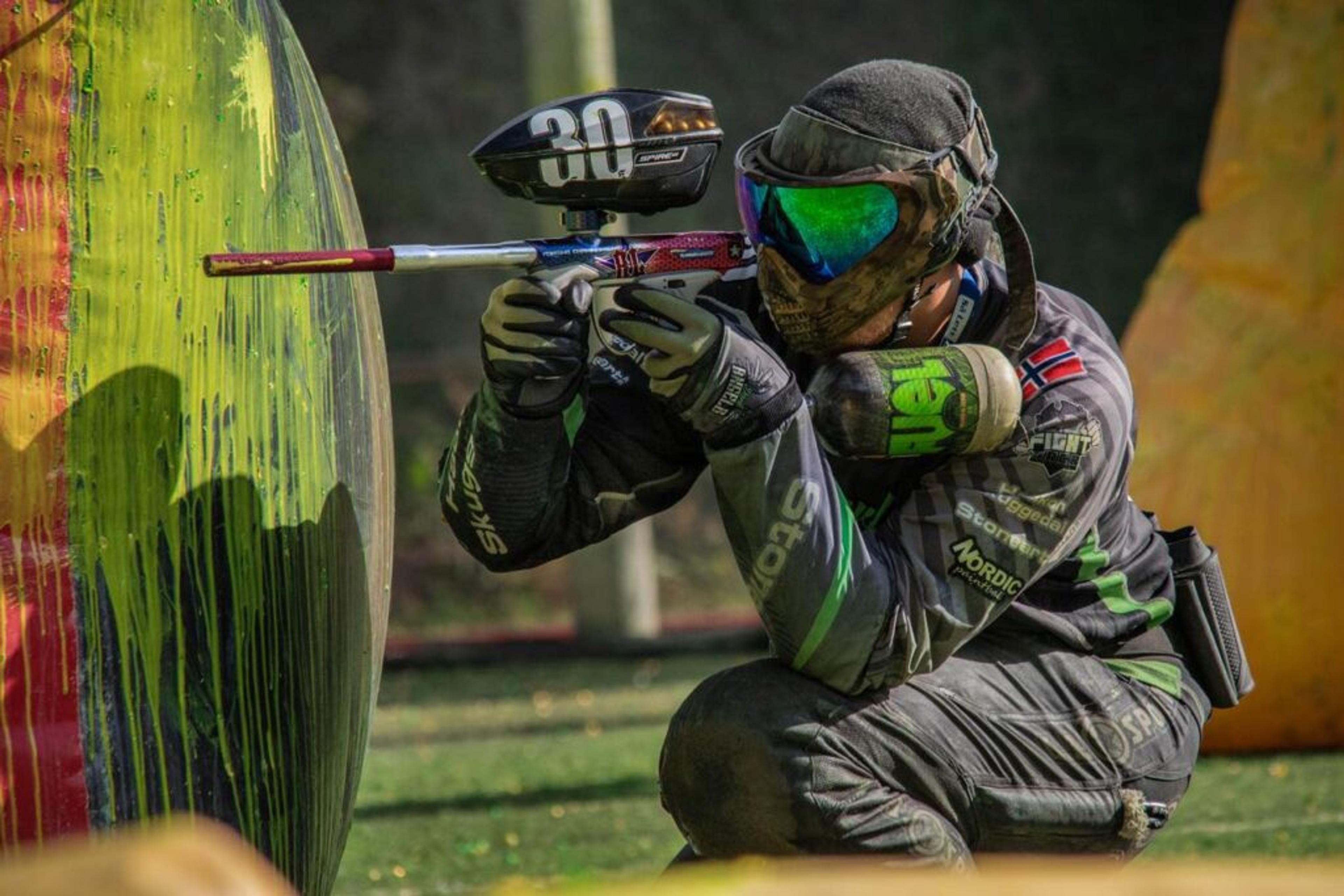 IT-KONSULENT: – Det er veldig få i verden som lever av dette, og de fleste av dem bor i USA. Men å hevde seg på det nivået hadde vært helt rått. Jeg skulle ønske jeg kunne bare fokusert på sporten, sier Thomas til lokalavisa. Her i aksjon på banen. Foto: Norges Paintball Forbund.