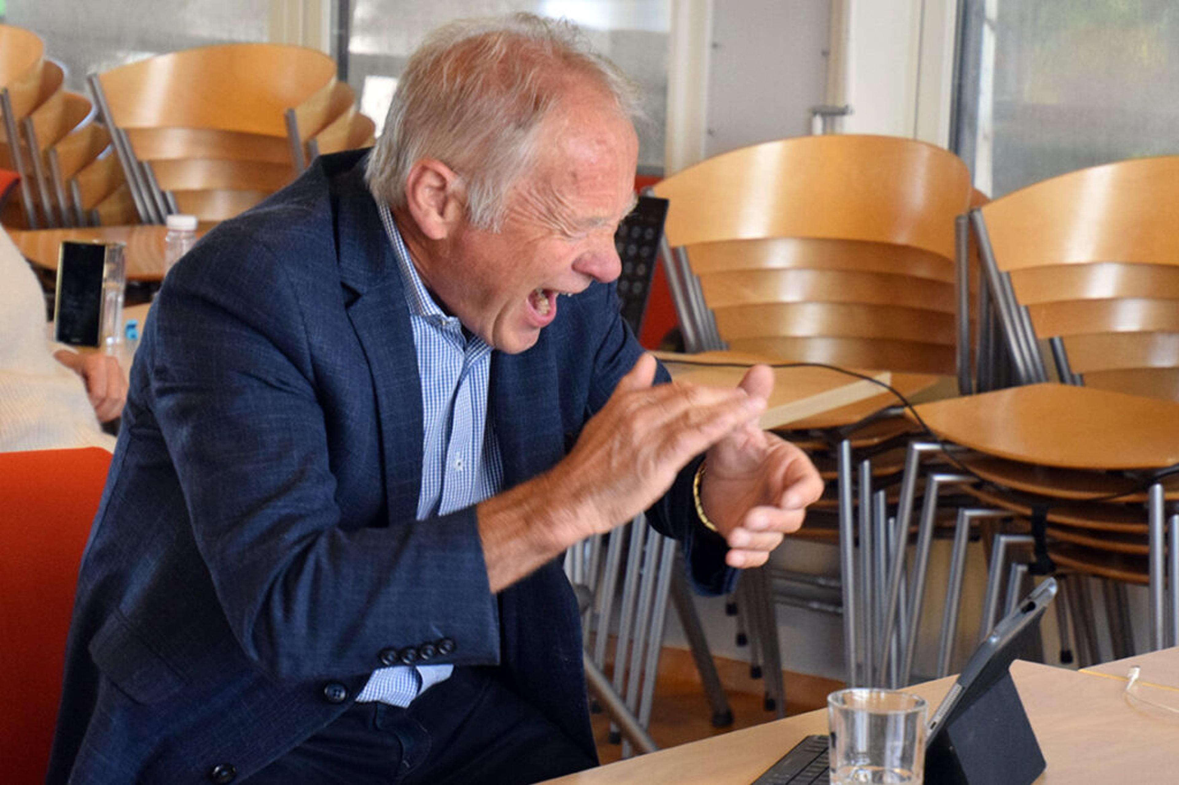 JUBELSCENER: Slik jubla gammel-ordfører i gamle Re kommune Thorvald Hillestad (SP) da det ble vedtatt å bygge ungdomshus – igjen. Dette er hans siste kampsak for Re og Revetal, har han tidligere sagt til ReAvisa. Foto: Stian Ormestad, ReAvisa.