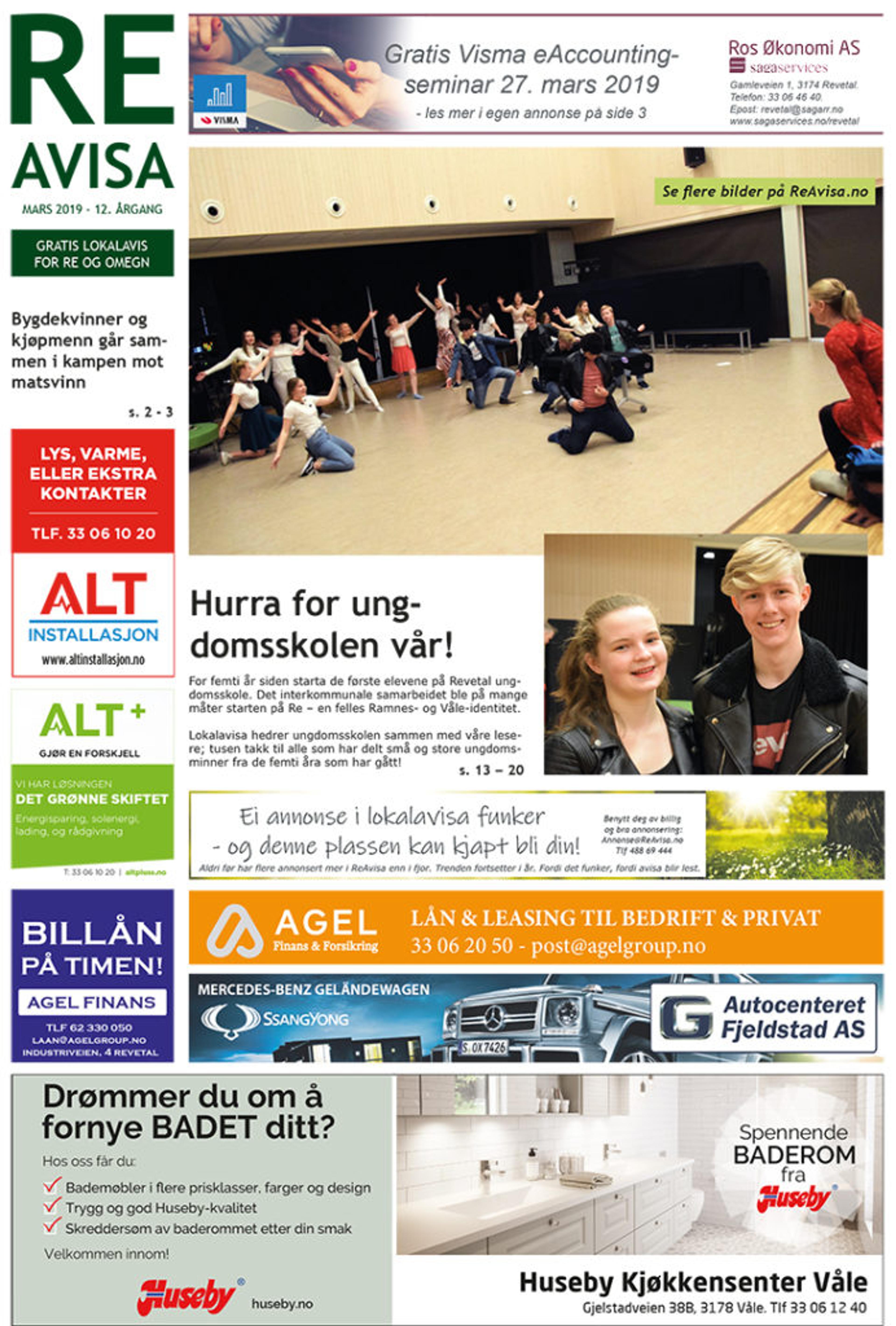 REVETAL UNGDOMSSKOLE 50 ÅR! Les mye mer om Revetal ungdomsskoles første femti år i papiravisa, der lokalavisa mimrer sammen med våre lesere. Faksimile: Forsida av ReAvisa, mars 2019.