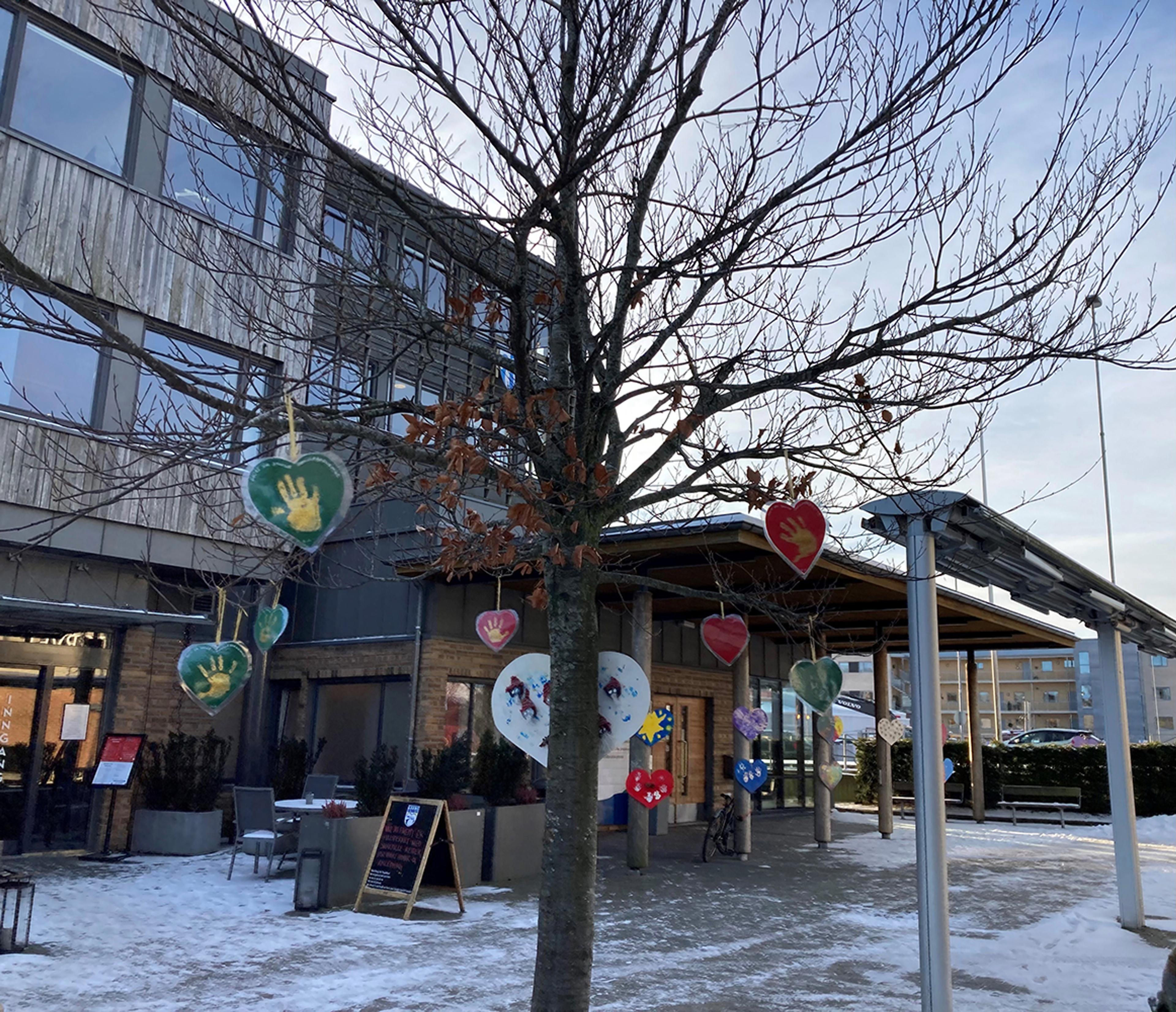KOMMUNEHUSET PÅ REVETAL: Hjertepynta til jul, av barnehagene i Re. Arkivfoto.