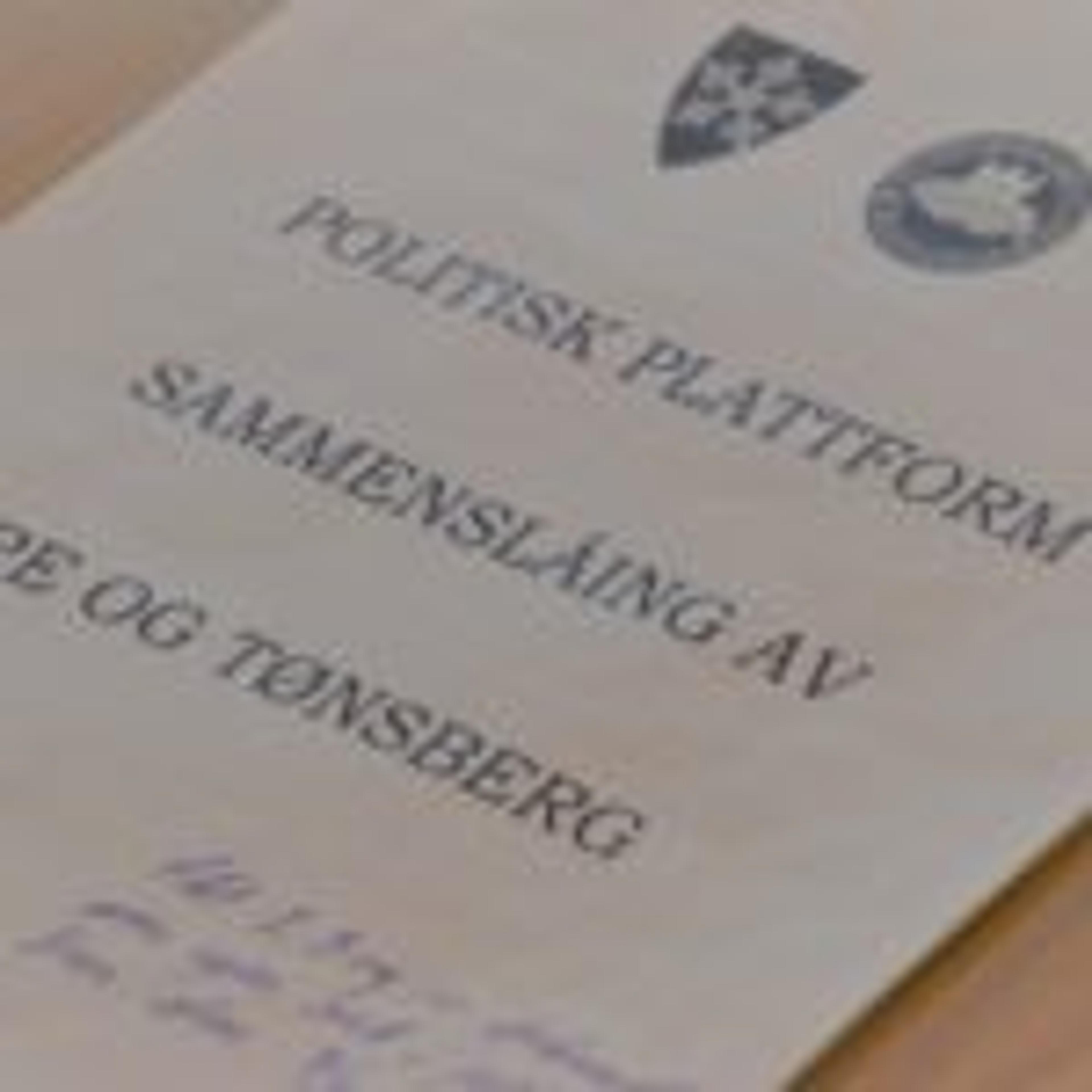 IKKE VERDT PAPIRET DET ER SKREVET PÅ? Den politiske plattformen for sammenslåing av Re og Tønsberg. Arkivfoto.