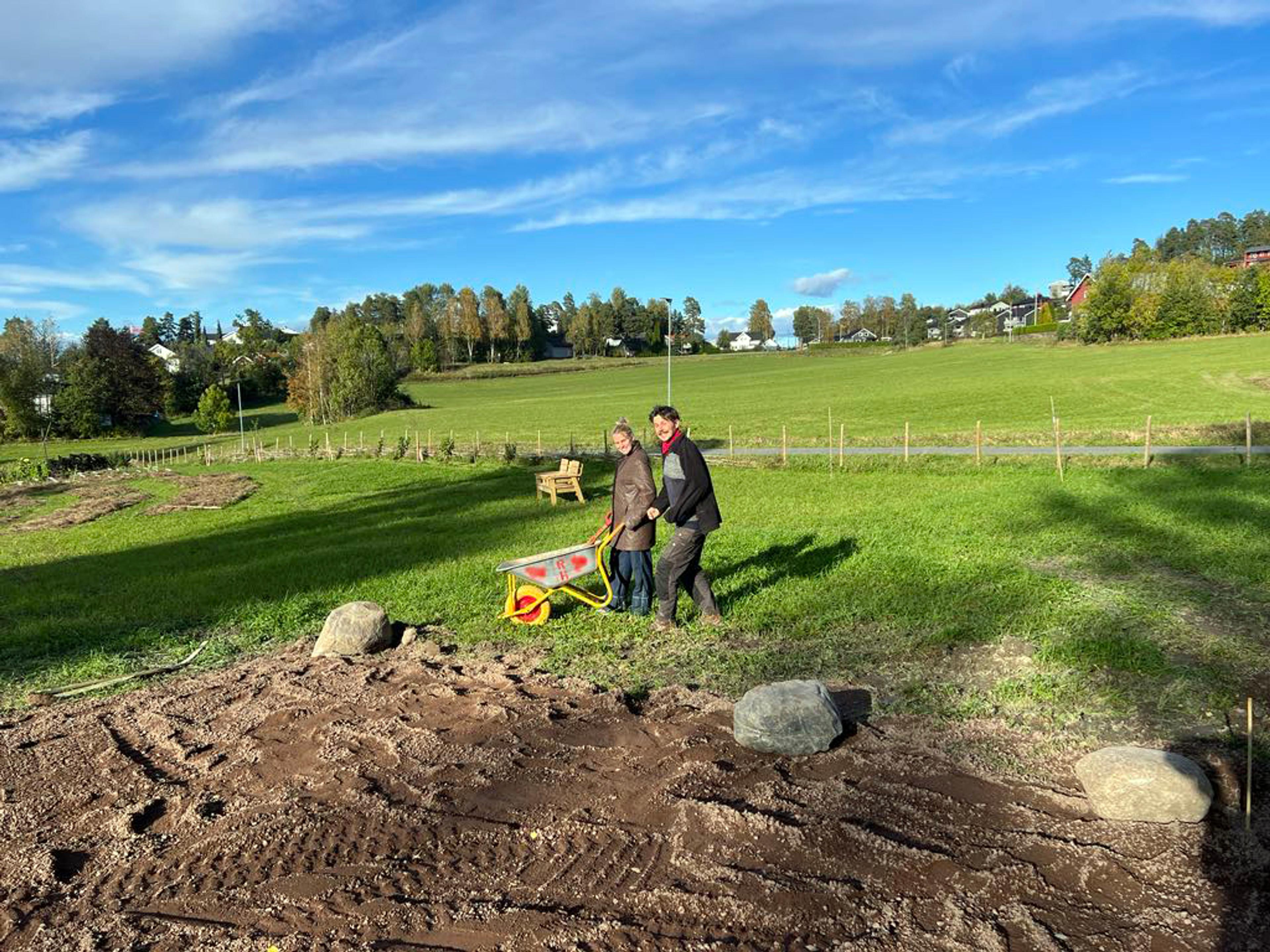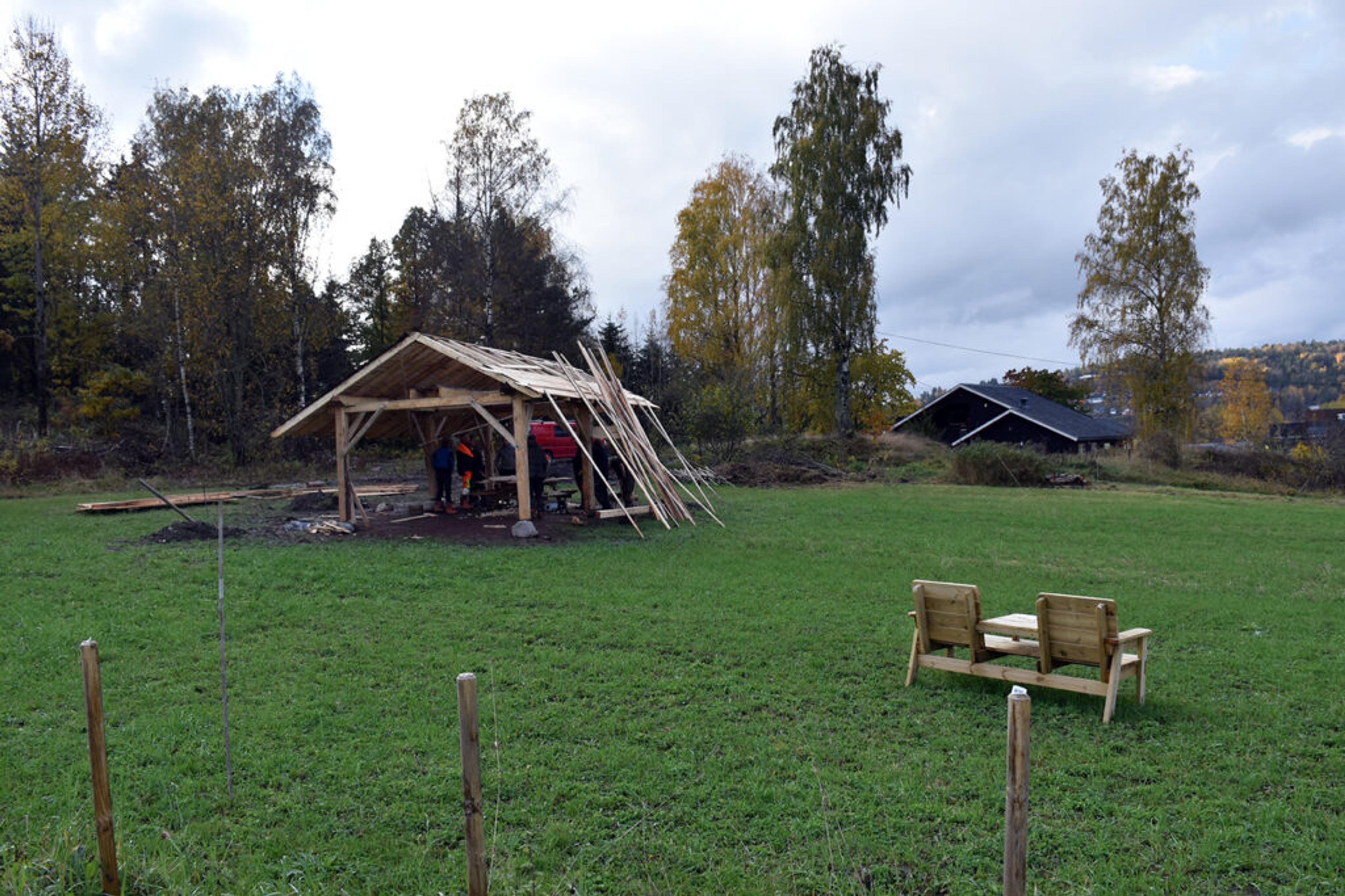 Se flere bilder fra reising av grindebygg i Revetalhagen: