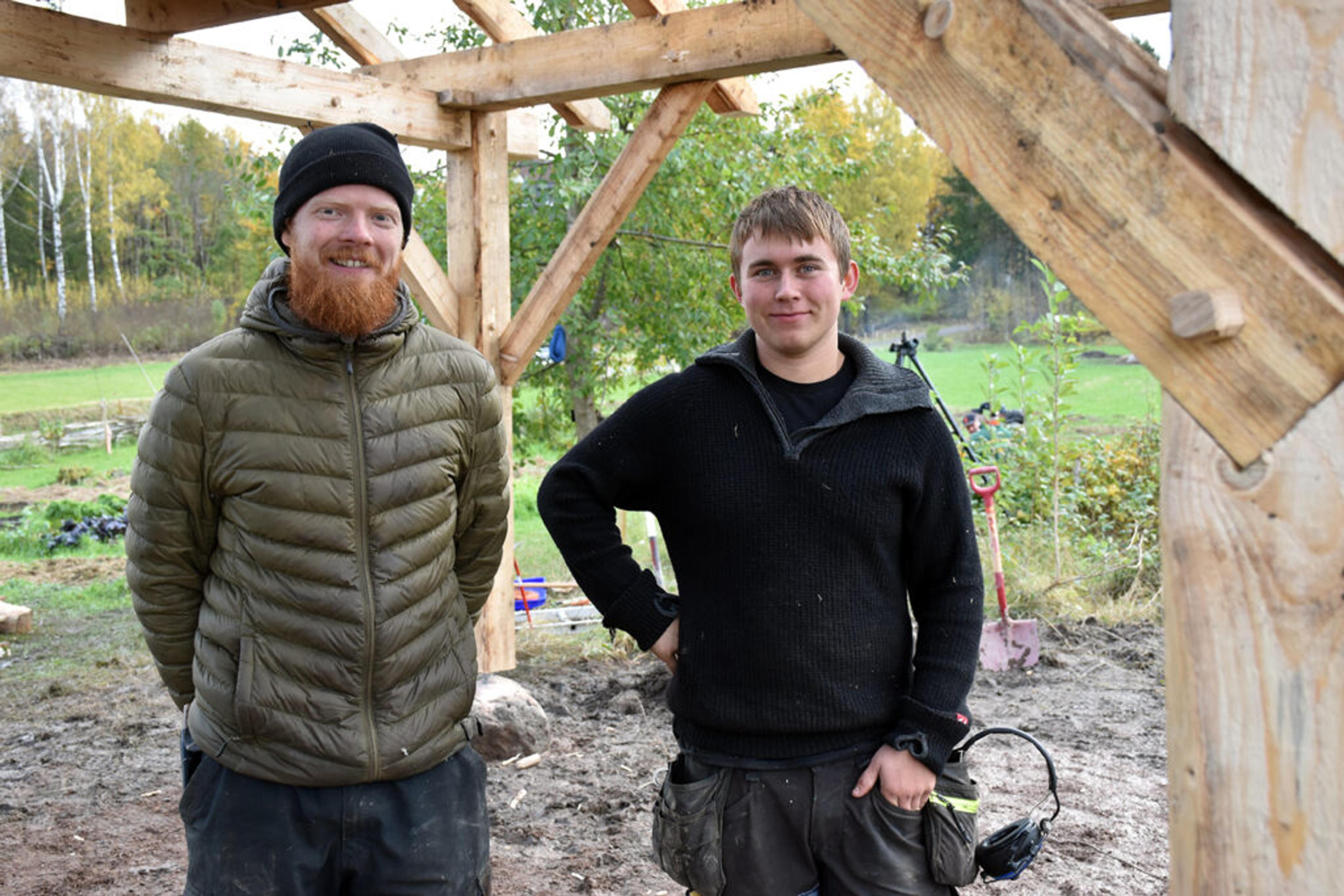 – Vi har bygd mange hytter sammen i skauen hjemme, forteller Martin Lefsaker (26) og Torje Ormestad Larsen (25) som vokste opp sammen i Holtgrenda i Undrumsdal. Nå bygger de over en eldgammel byggeskikk i Revetalhagen.