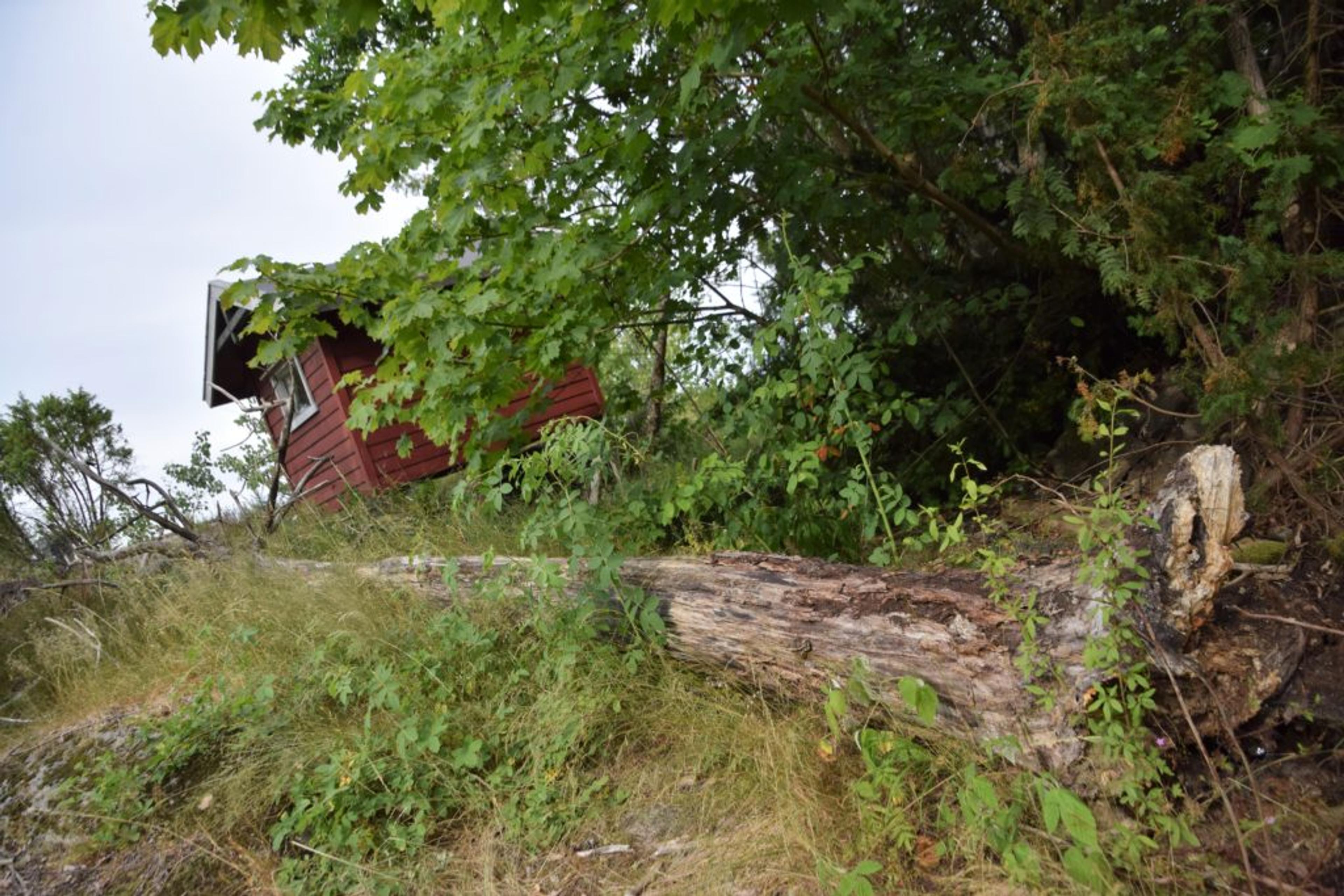 Skogbrannfare er flere redde for, her står vegetasjonen helt inn til husveggene. Om vintrene er det ikke bedre, når store trær gir etter for snø og is. Det er mange historier om greiner og trær som ramler ned – heldigvis med «bare» materielle skader – ikke personskader.