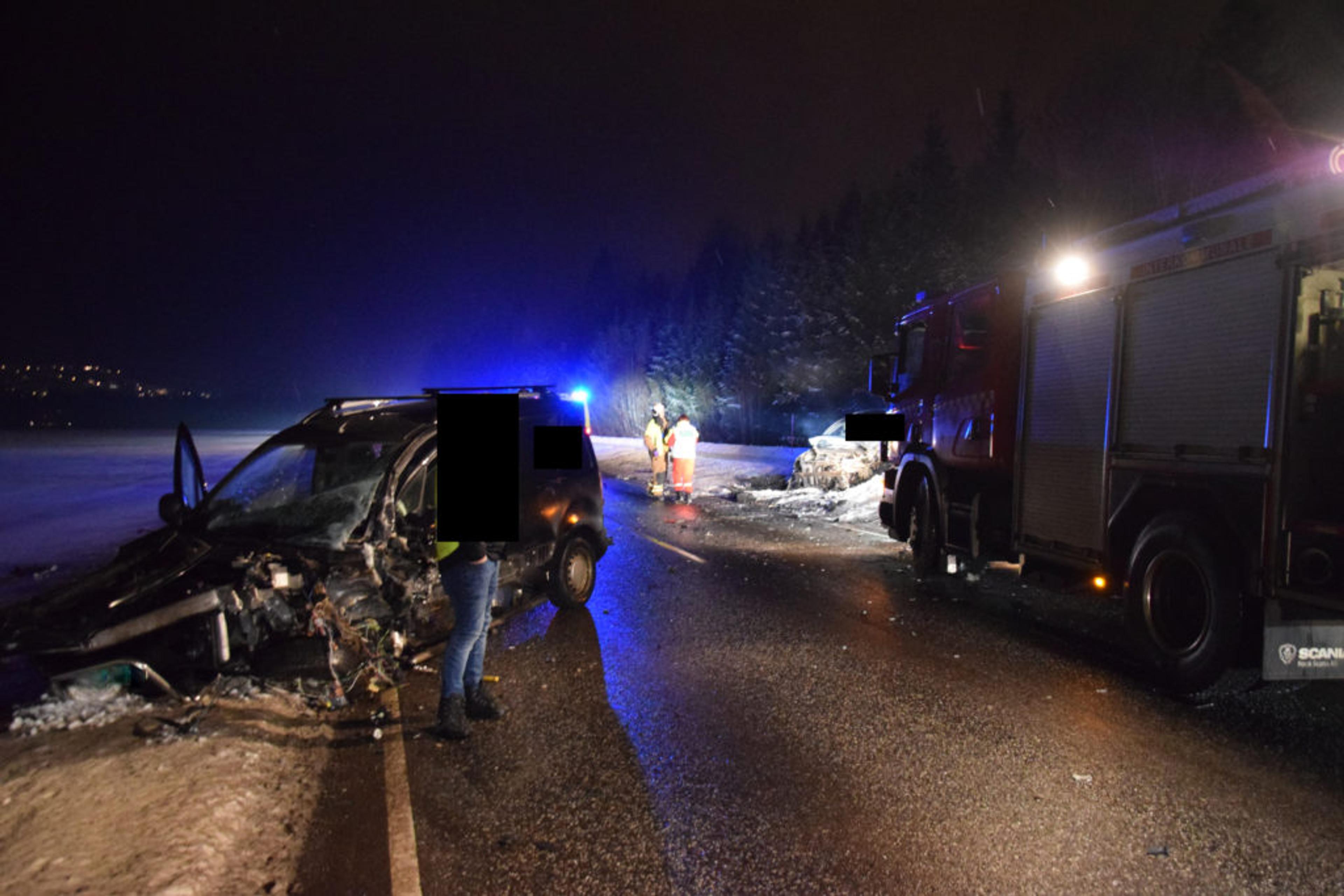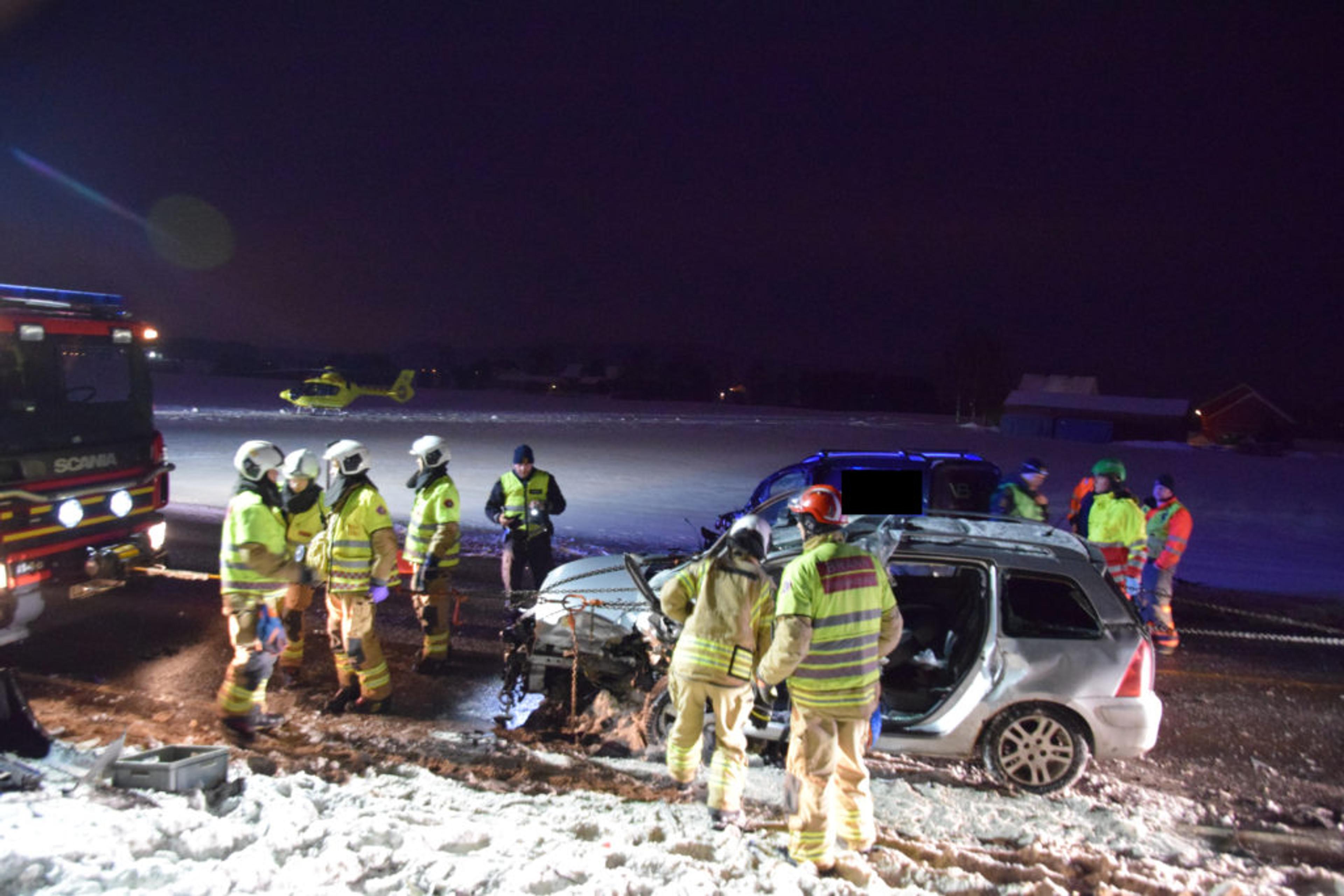 Det skal ifølge politiet først ikke være snakk om alvorlige personskader: – En person i hver bil. En person sitter fastklemt med beina, men er bevisst.