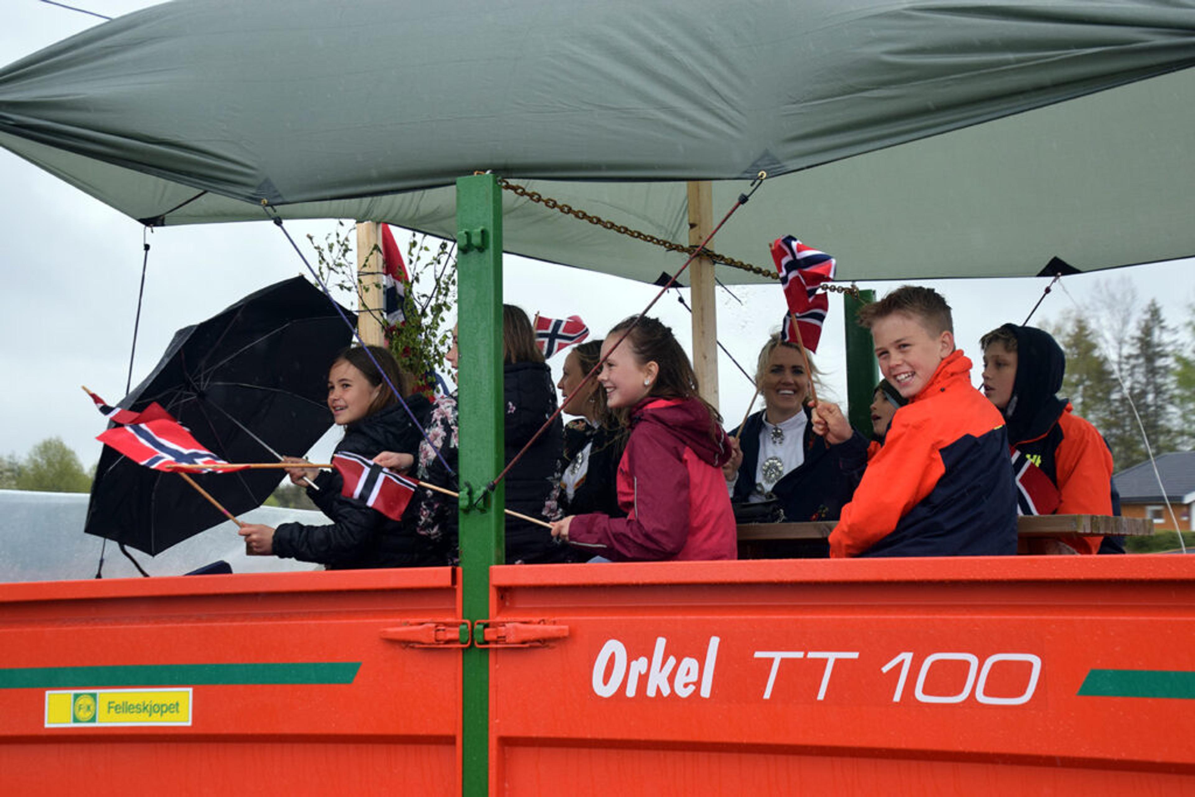 Bak traktortoget står Fon bondelag, og Fon ungdomslag delte ut is til alle ungene i toget.
