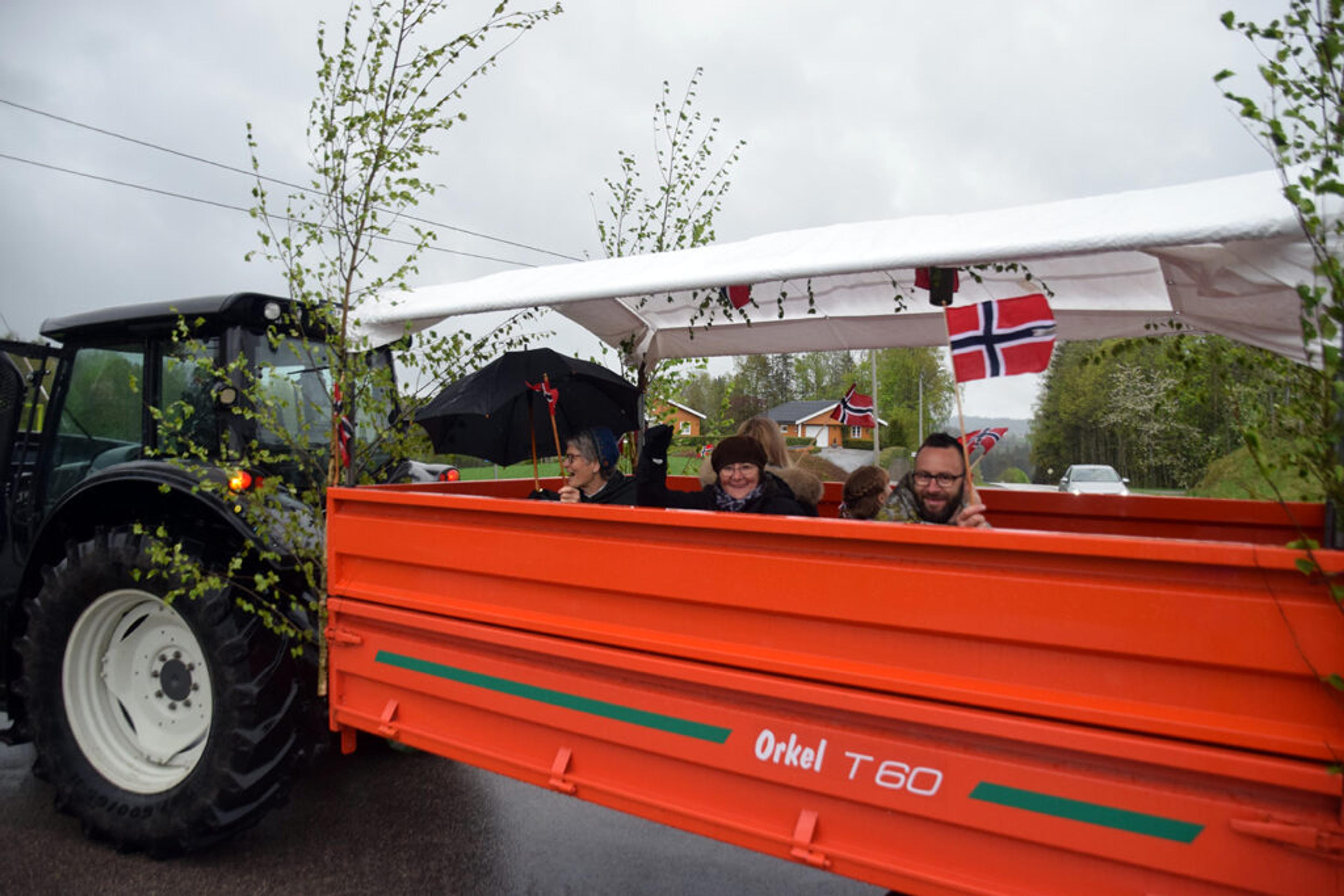 På veien møtte bøndene feststemte folk som heia dem fram, og ved bedehuset i nordre Fon ble det stopp for nasjonalsangen, akkompagnert av Glagjengen.