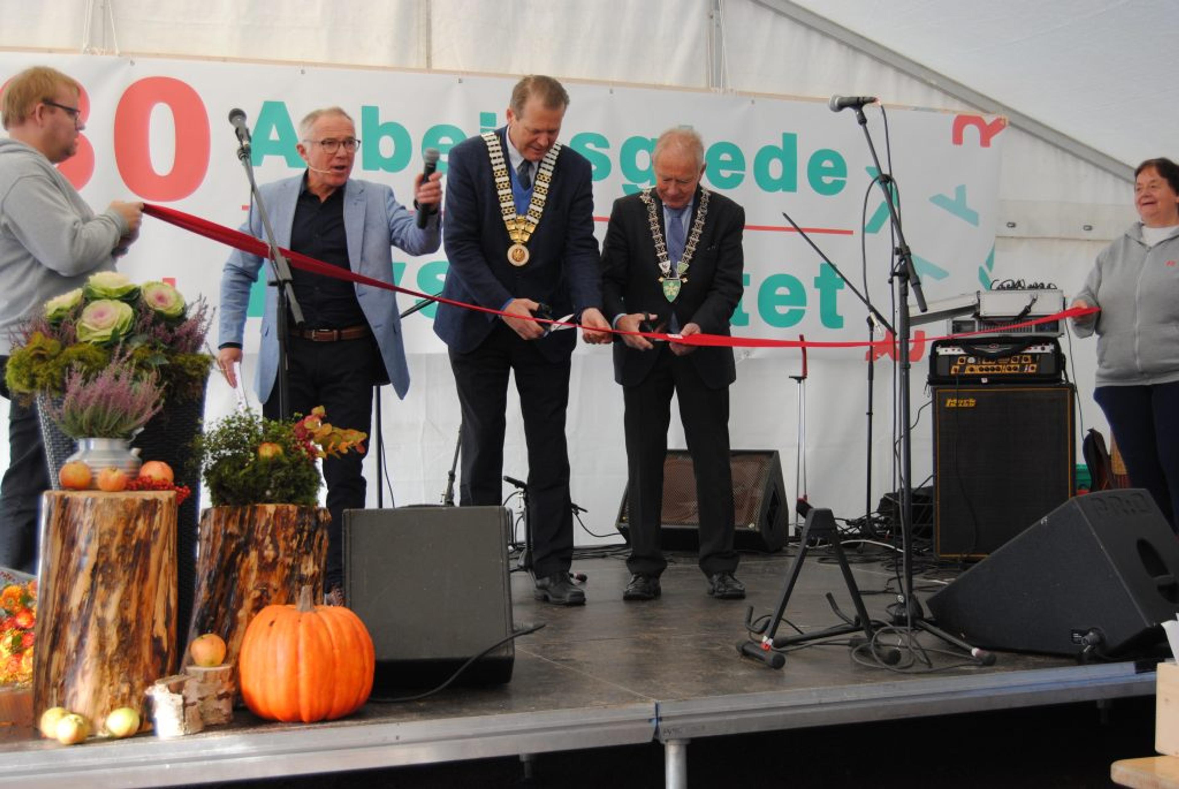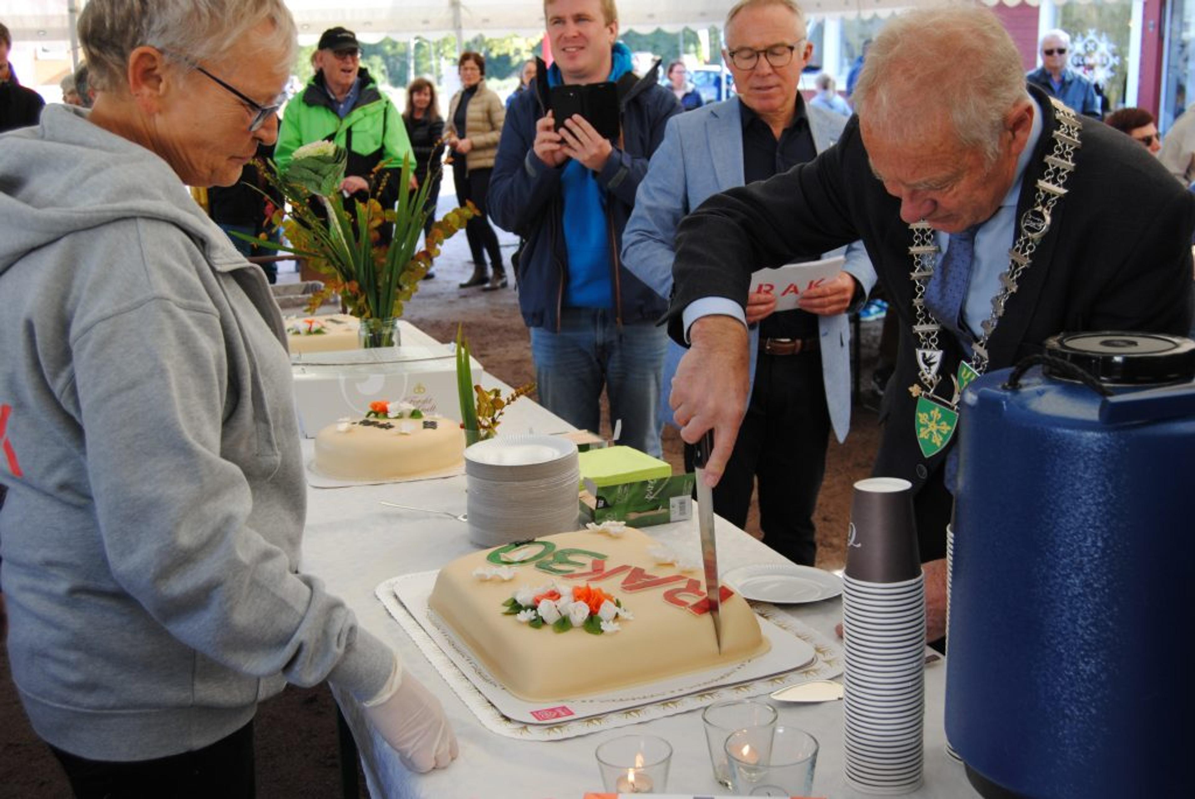 SNORKLIPP: Holmestrand-ordfører og Re-ordfører er samkjørte i snorklippen for jubileumsfesten. Håpet er at nye Tønsberg og nye Holmestrand er like samkjørte når det gjelder Revetal-bedriften. Foto: Lykke Amelie Amundsen.