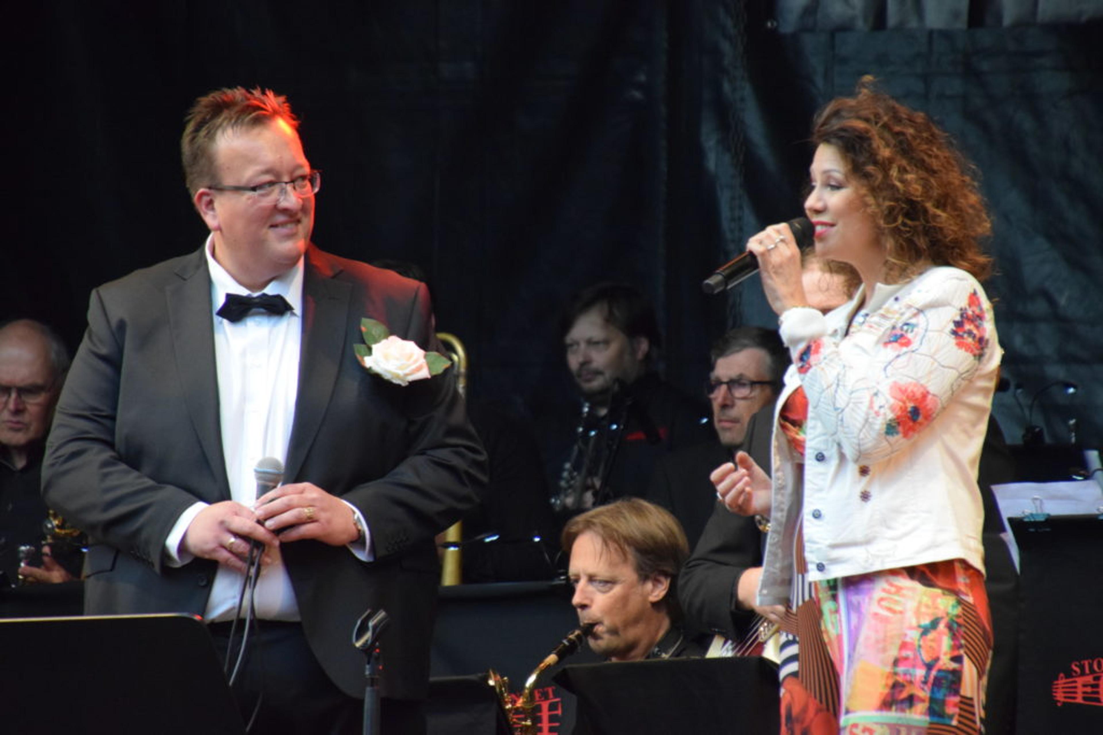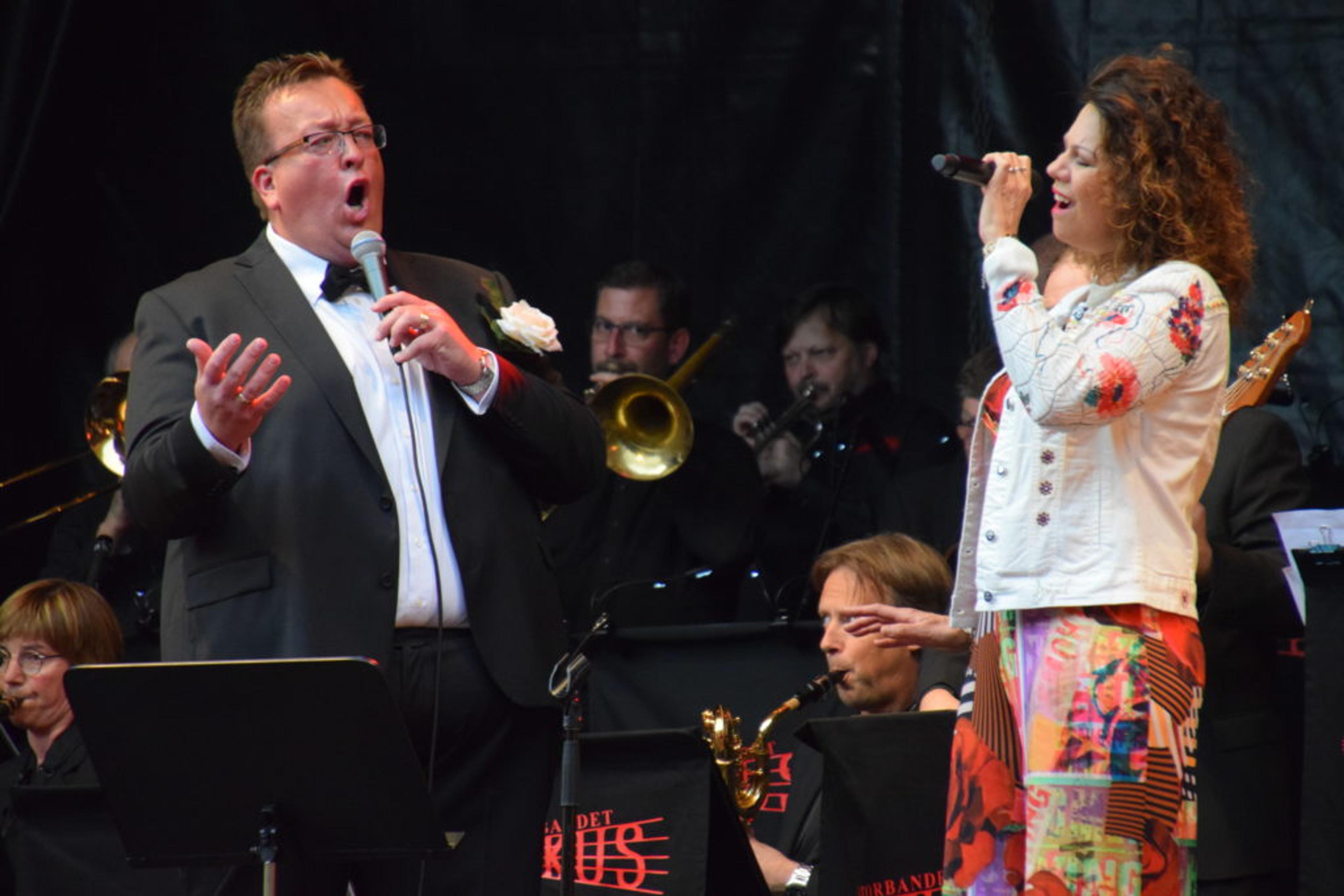DUETT: Jan Kristian Hverven og Trine Rein synger sammen The prayer, stødig backa opp av Storbandet Fokus. Foto: Stian Ormestad.