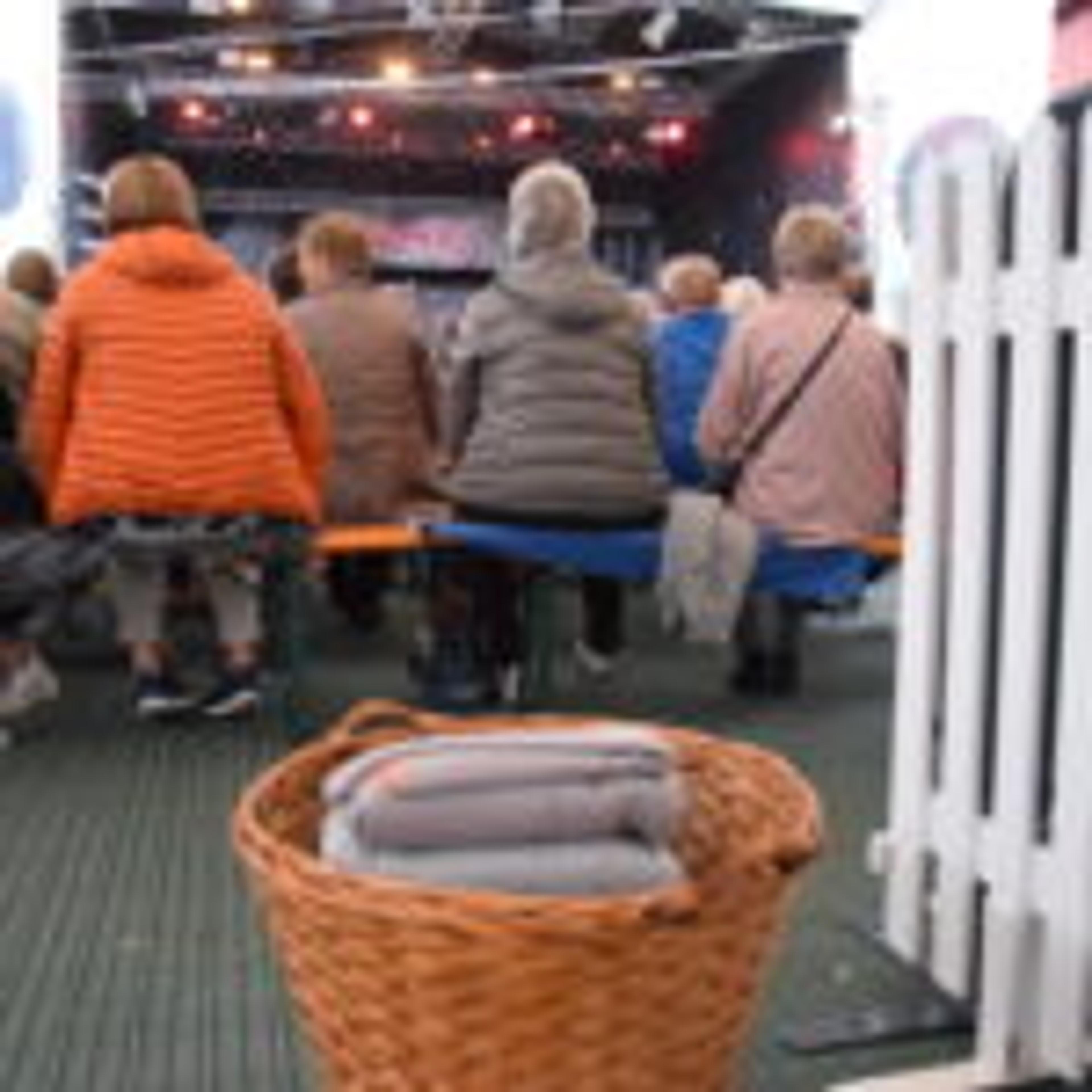 FOLKSOMT: Fulle benkerader i Foynhagen onsdag 5. juni med Storbandet Fokus fra Re på scenen. Foto: Stian Ormestad.