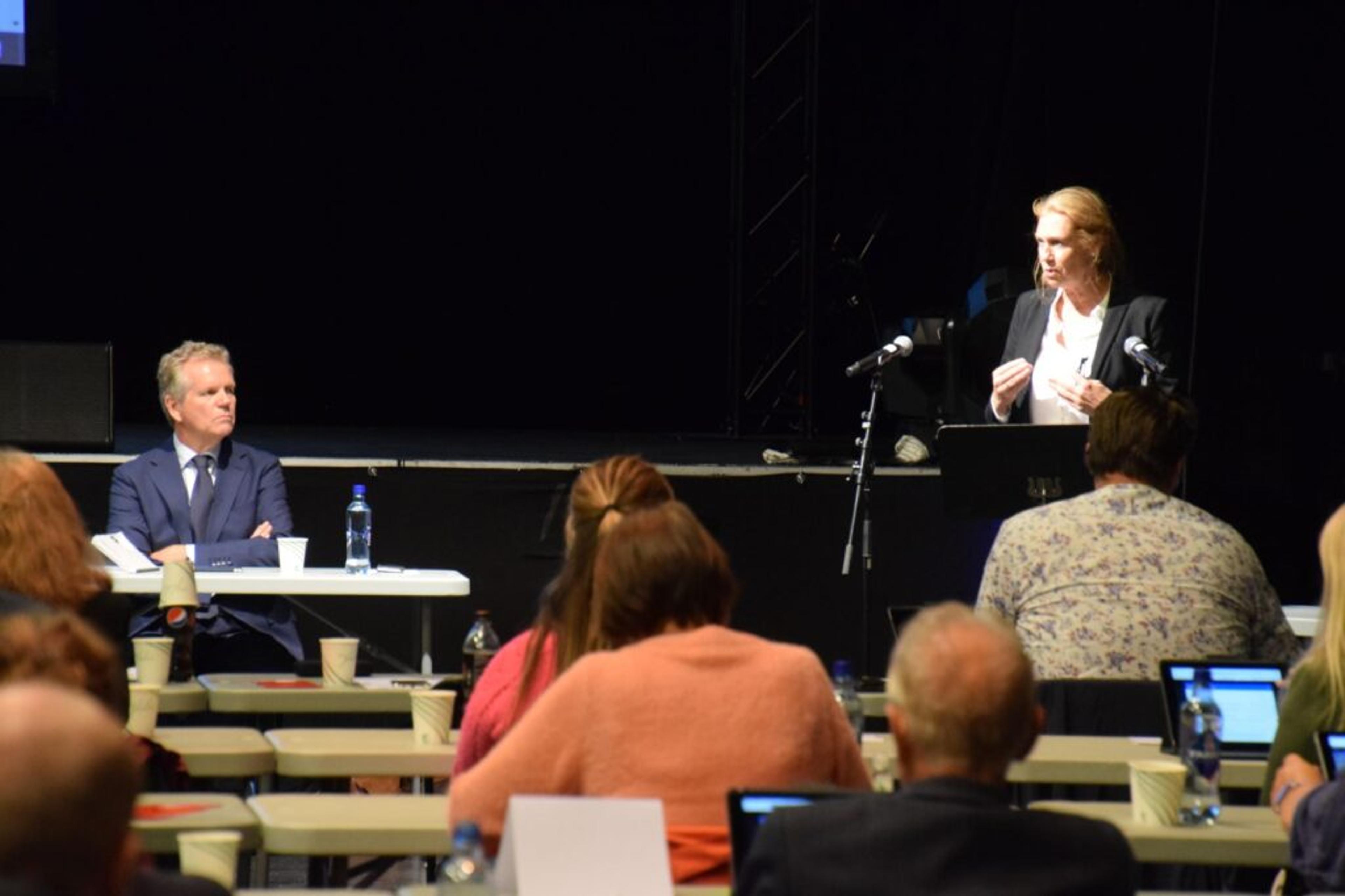 ERFAREN POLITIKER: Trude Viola Nordli (AP) på talerstolen i nye Tønsbergs kommunestyre. Foto: Stian Ormestad.