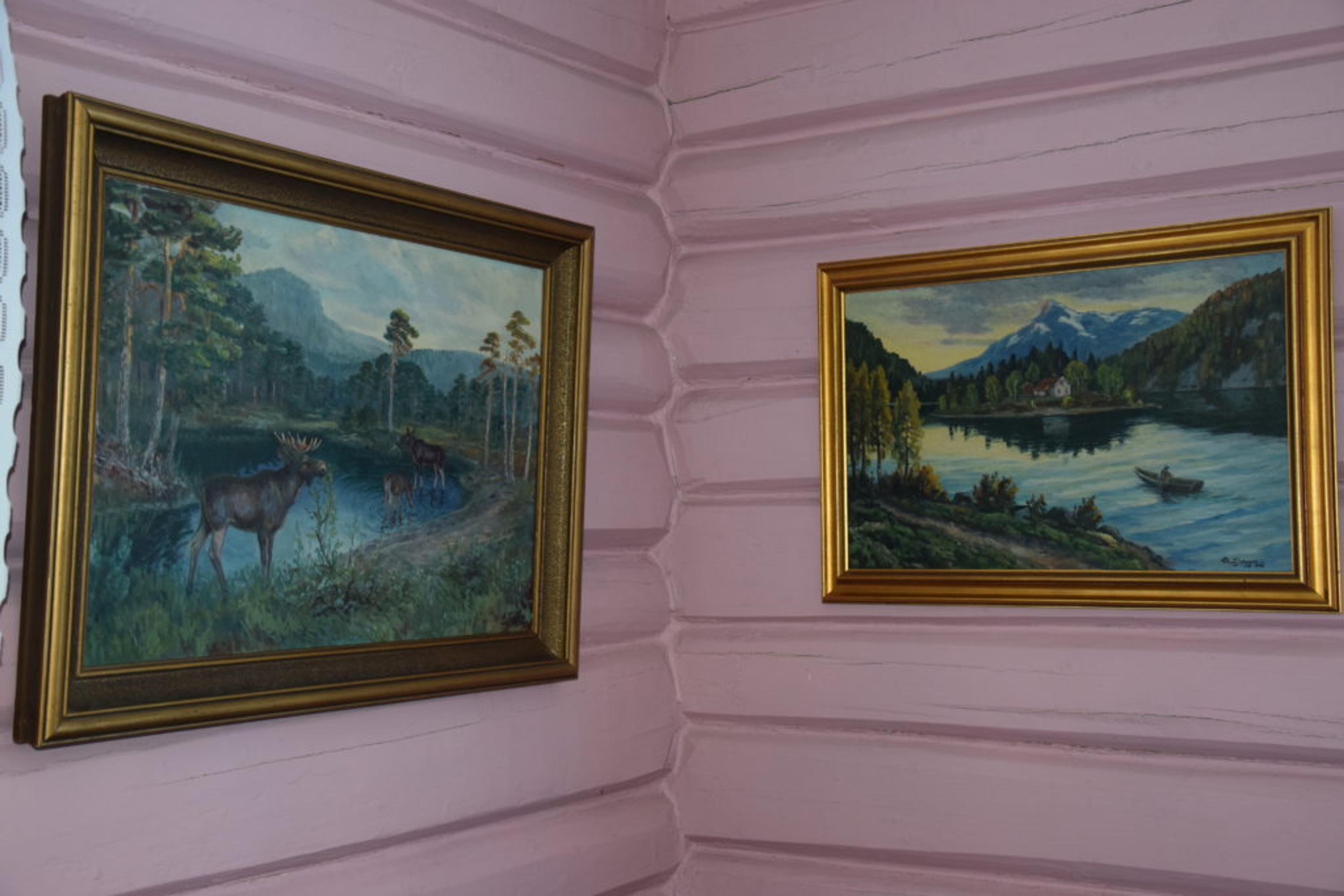 LANDSKAP OG DYR: To av Ole Sjuves malerier. Foto: Håkon Westby.