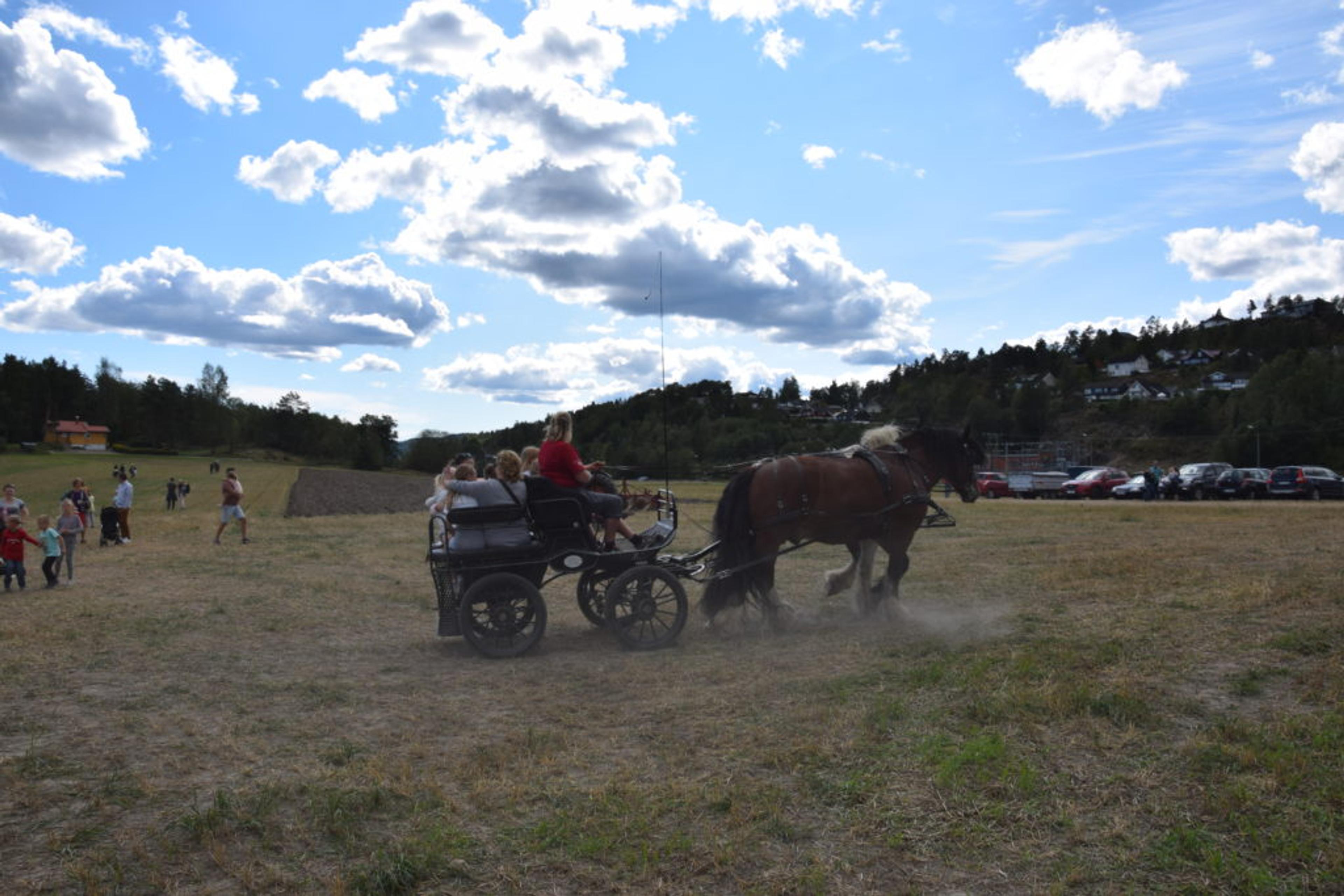POPULÆRT: Kjøring med hest og vogn hadde en liten kø hele tida lørdag. Søndag er det nye muligheter på Bygdetunet Brår og årets Åpen gård-arrangement. Foto: Håkon Westby.