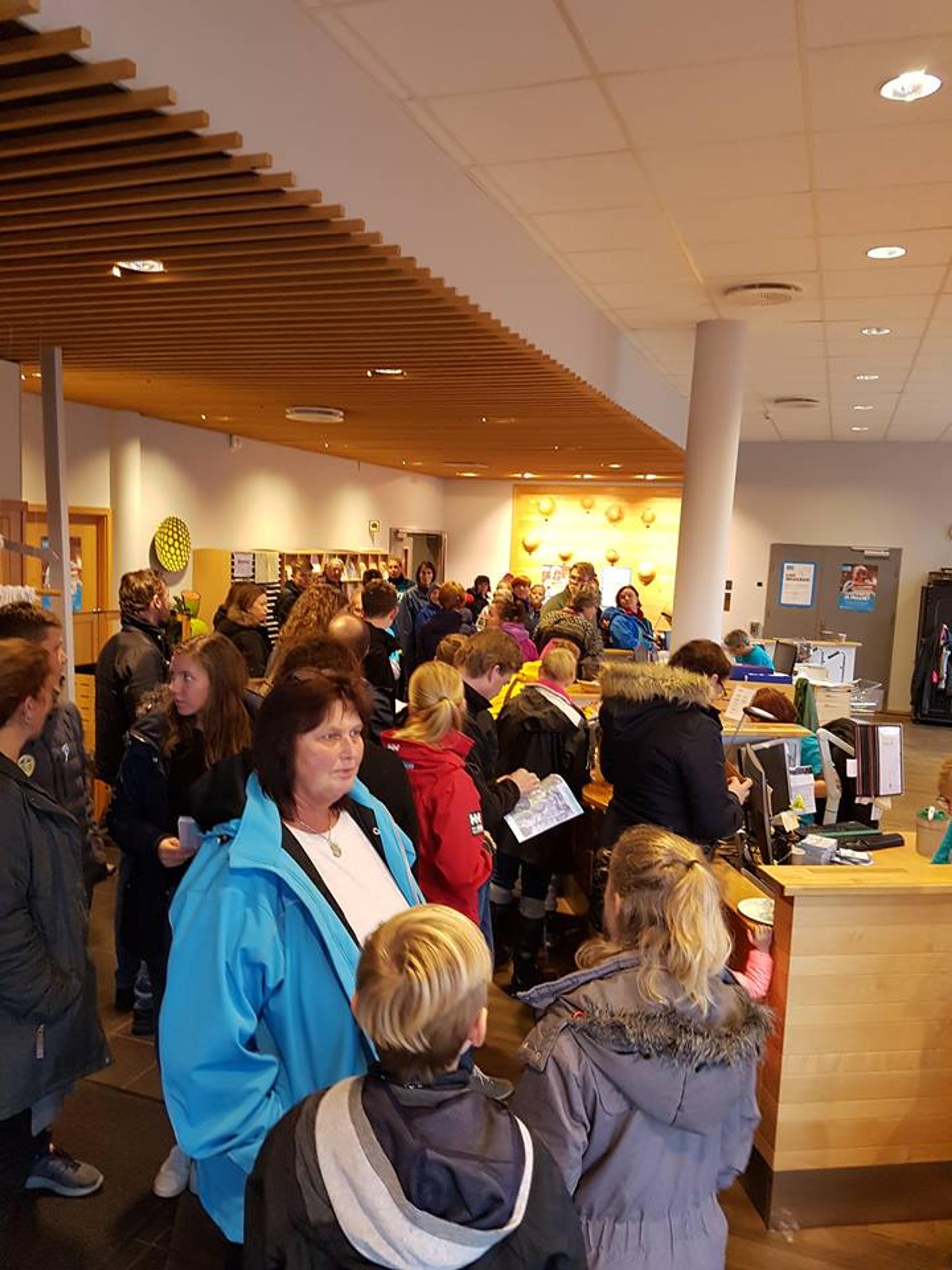 FOLKSOMT: Dette bildet er fra TV-aksjon-oppmøte på Revetal for sju år siden, da møtte det flere folk enn det var ruter til. Det luksusproblemet ligger det ikke an til i år. Den gang var oppmøte på kommunehuset, i år er oppmøte på Revetal bibliotek. Arkivfoto.